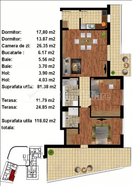 Cluj-Napoca, Centru 3 szobák • 82 m2 • 2 Fürdők száma • emelet 5/6 • semidecomandatfinisat • mobilat complet