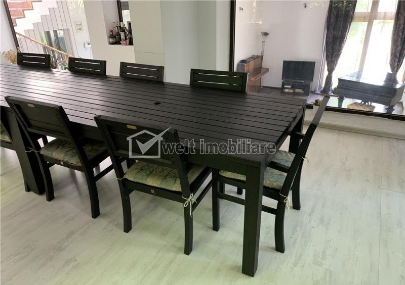 Ház 7 szobák kiadó on Cluj-napoca, Zóna Grigorescu Cluj-Napoca, Grigorescu 7 szobák • 415 m2 • 1000 m2 telekmobilat partial Ár kiadó alkudható 4 500 €/hónap + 6 + 3 Kiadva Jellemzők Ingatlan típusa Ház Szobák száma 7 Konyhák száma 1 Fürdők száma 3 Parkoló igen Pince nem Kert igen Hasznos terület 415 m2 Beépített terület 498 m2 Telek területe 1000 m2 Építési év 2011 Belső kialakítás: Parketta, Járólap, Csempe, TV