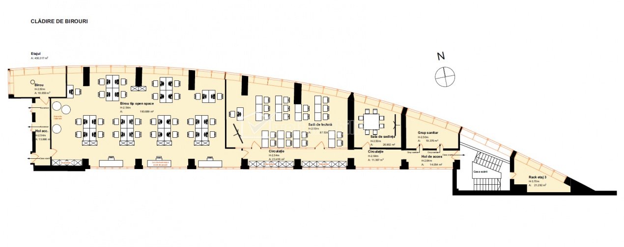 + 6 + 3 Jellemzők Helyiség-típus Iroda Hasznos terület 430 m2 Helyiségek száma 1 Fürdők száma 2 Terrasses -- Parkolók száma 1 Garázsok száma -- Ingatlan típusa cladire de birouri Iroda kategóriák A Emelet 4/6 Építménymagasság D+P+6E Tartószerkezet a Beton Építési év -- Beépített terület 515 m2 Udvar területe -- Közművek Általános közművek: Villanyáram, Víz, Gáz, Csatornázás, Kábel TV Belső kialakítás: Parketta Megtekintések száma: 298 Frissítve: 2026-03-18 13:04:53