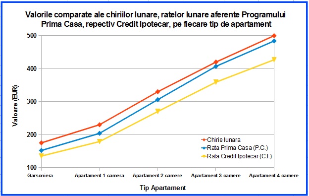 Chiriaș sau proprietar? Autor: Diverse • Apartamente • Case si Vile • Prima Casa. Stiri financiare • Inchiriere 07/02/2013 Pentru mare parte dintre potenţialii clienţi de pe piaţa imobiliară clujeană, opţiunea de cumpărare prin credit sau închiriere este o dilemă. Pentru a veni în ajutorul acestora, Welt Imobiliare a făcut o analiză a valorilor chiriilor lunare, comparativ cu valorile ratelor lunare pe care aceşti clienţi vor trebui să le ramburseze în cazul accesării unui credit pentru locuinţe. Rezultatele analizei sunt prezentate în tabelul şi graficul de mai jos. Pentru realizarea analizei s-au luat în considerare apartamente în imobile noi, preţurile medii de tranzacţionare ale acestora în varianta finisată şi amplasate în zone cu un grad ridicat de interes în vederea închirierii. Pentru calculul ratelor, s-a prevăzut o eşalonare a creditului de 30 ani, iar analiza s-a făcut pe două tipuri de credit pentru locuinţe: Prima Casă, cu un avans de 5% din valoarea imobilului și o dobânda anuală efectivă de 5% Credit Ipotecar, cu un avans de 25% din valoarea imobilului și o dobânda anuală efectivă de 6% Rezultatele analizei relevă clar faptul că, valoarea chiriilor este mai mare decât a ratelor de rambursare a creditelor. Dacă la garsoniere şi apartamentele cu o cameră, chiria lunară este cu 12 - 15 % mai mare comparativ cu ratele pentru programul Prima Casă, în cazul apartamentelor de 3-4 camere ar ajunge să fie cu doar 3 - 4 % mai mare (însă trebuie luat în considerare că Programul Prima Casă are stabilit un plafon de 60.000 Euro). În cazul creditului ipotecar, unde avansul este de 25% din valoarea imobilului, chiria lunară este mai mare decât rata cu 29 % în cazul garsonierelor şi ajunge la 16% în cazul apartamentelor cu 4 camere. Concluzia este că, în această perioadă, este mai avantajos să cumpăraţi, în special dacă aveţi în vedere o perioadă mai lungă de şedere în Cluj-Napoca. Evident, o mare parte dintre clienţii pieţei imobiliare, precum studenţii vor prefera în continuare să închirieze, datorită perioadei scurte pe care o petrec în Cluj-Napoca, până la finalizarea studiilor. Bineînţeles, la terminarea studiilor, dacă decid să rămână în Cluj-Napoca, vor deveni clienţi cumpărători pe piaţa imobiliară clujeană. Welt Imobiliare vine în sprijinul clienţilor cu o ofertă bogată de imobile. Indiferent ce alegere veţi face, aici găsiţi o echipă de profesionişti dedicaţi succesului dumneavoastră.Tudor M, Welt Imobiliare
