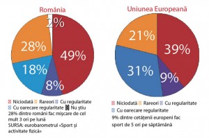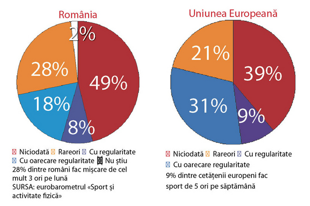 E-xercițiul fizic Autor: Diverse 22/11/2012 E-xercițiul Fizic Dacă ieri am scris despre importanţa alimentaţiei pentru a putea avea un corp sănătos astăzi urmând acronimul “NEW START” azi vă scriu despre importanţa EXERCIŢIULUI FIZIC pentru corpul nostru. Importanţa sportului începe să fie în ultimi ani o preocupare pentru tot mai multe persoane putem conştientiza acest lucru şi prin numărul mare de săli de fitness deschise în oraşul nostru în ultimii 5 ani. Exerciţiu fizic în mod regulat ne ajută enorm de mult sănătatea şi ne fereşte de multe afecţiuni şi bineînţeles de o îmbătrânire rapidă a corpului nostru. În continuare o să vă prezint un studiu comparativ între România şi UE care ne va arăta cât de des fac românii sport faţă de restul cetăţenilor UE. Studiul este preluat de pe site www.gandul.info:Românii nu prea iau sportul în serios: jumătate dintre ei recunosc că nu fac deloc mişcare. Nici "efortul" nu e chiar efort, ci, potrivit studiilor, mai degrabă prilej de socializare. Cum stăm în comparaţie cu europeniiAproape jumătate dintre români nu fac niciodată sport, faţă de 39% dintre cetăţenii europeni şi doar opt din o sută de conaţionali practică exerciţii fizice în mod regulat, după cum arată eurobarometrul "Sport şi activitate fizică", publicat în primăvara acestui an de Comisia Europeană. Românii sunt cu mult sub media europeană la capitolul mişcare, indiferent că este vorba de frecvenţa cu care fac exerciţii ori de scopul pentru care aleg să facă sport. România nu se compară nici de departe cu Irlanda şi ţările nordice, care iau mişcarea cel mai în serios din toată Europa. Astfel, 23% dintre cetăţenii irlandezi practică o formă de sport cel puţin de cinci ori pe săptămână, faţă de 8% în ţara noastră. Vestea bună este că stăm mult mai bine decât bulgării, grecii şi italienii: doar 3% dintre aceştia desfăşoară activităţi sportive cu regularitate.Faci sport? SocializeziDe ce aleg românii să facă sport? Cei mai mulţi (43%) spun că pentru a-şi îmbunătăţi sănătatea, faţă de 61%, media UE, cu 18 procente peste România. Diferenţe mari se constată, de altfel, la cele mai multe categorii, chiar dacă răspunsurile sunt aceleaşi. Astfel, doar 10% dintre conaţionali fac mişcare pentru a-şi îmbunătăţi condiţia fizică, de patru ori mai puţin decât restul europenilor. Sportul este mult mai distractiv pentru restul Europei, după cum arată rezultatele studiului, 39% dintre cetăţenii UE declarând că acesta este scopul pentru care aleg mişcarea, faţă de 11%, în România. Aceştia sunt respondenţii care ştiu de ce fac exerciţii fizice, pentru că unii fac sport fără a avea neapărat un motiv. 17 din o sută de români intră la această categorie, comparativ cu 3%, media europeană. Sunt însă şi dintre cei care declară că desfăşoară activităţi sportive pentru a-şi face prieteni. Cetăţenii români sunt astfel mai puţin prietenoşi decât europenii, după cum arată eurobarometrul: 3% este procentajul din România, comparativ cu 5%, media UE. Până la urmă, sport se poate face oriunde, în parc, pe drumul dintre casă şi serviciu sau şcoală, după cum au răspuns majoritatea participanţilor la sondaj. Practic, cei care merg la sală ori la cluburi de sănătate, dotate cu aparate moderne şi bazine de înot, sunt mult mai puţini, pentru că asta presupune bani cheltuiţi. E drept însă că nivelul de trai din UE este cu mult peste cel din România. Doar 4% dintre conaţionali merg la sala de fitness, comparativ cu 11%, media UE. Românii se dovedesc însă mai puţin convenţionali decât europenii, 26% dintre respondenţii autohtoni spunând că fac sport în alte locuri decât cele menţionate, faţă de 11%, media UE.Româncele de peste 40 de ani iubesc sportulBărbaţii din UE desfăşoară mai des activităţi sportive decât femeile. În România, bărbaţii cu vârste cuprinse între 25 şi 39 de ani sunt, de departe, cei mai dinamici, în timp ce româncele iubitoare de mişcare fac parte din categoria de vârstă 40-54 de ani. Spre comparaţie, în UE, cei mai numeroşi sunt bărbaţii cu vârste cuprinse între 15 şi 24 de ani (19% dintre respondenţi), respectiv femeile de la categoria 55-69 de ani (11% dintre răspunsuri). La studiul european au participat aproape 27 000 de cetăţeni din cele 27 de state membre, iar sondajul s-a desfăşurat la finele anului trecut.Alte constatări ale studiuluiCetăţenii UE au preferinţe diferite în privinţa locului unde practică exerciţiile fizice: 83% dintre sloveni preferă exerciţiile în aer liber, acest indicator fiind de 76% în Finlanda şi de 67% în Estonia. Exerciţiile în aer liber sunt preferate de doar 27% dintre respondenţii din Grecia, de 28% dintre cei din Malta şi de 29% dintre cei din România. Centrele de menţinere a formei fizice sunt cele mai populare locuri pentru suedezi (31%) şi ciprioţi (22%), în timp ce doar 2% dintre respondenţii francezi şi maghiari le preferă, 61% dintre respondenţii din Germania şi 57% dintre cei din Austria sunt membri ai unor cluburi de sport sau ai altor cluburi unde se desfăşoară exerciţii fizice, în timp ce aceşti indicatori au valori mult mai mici în Ungaria (8%), Grecia şi Lituania (12%). În ansamblu, cetăţenii europeni consideră că autorităţile locale depun suficiente eforturi pentru a le pune la dispoziţie oportunităţi de practicare a exerciţiilor fizice. Finlanda (76%) şi Luxemburg (75%) înregistrează cel mai mare nivel de satisfacţie, pe când cetăţenii din Polonia şi Italia (52%) consideră că autorităţile nu depun suficiente eforturi. Sursa: https://www.gandul.info/news/opt-romani-dintr-o-suta-fac-sport-in-mod-regulat-cum-arata-cifrele-in-ue-special-7682636 Din acest studiu vedem că românii încep să pună accent, deşi nu suficient pe sport. Un motiv