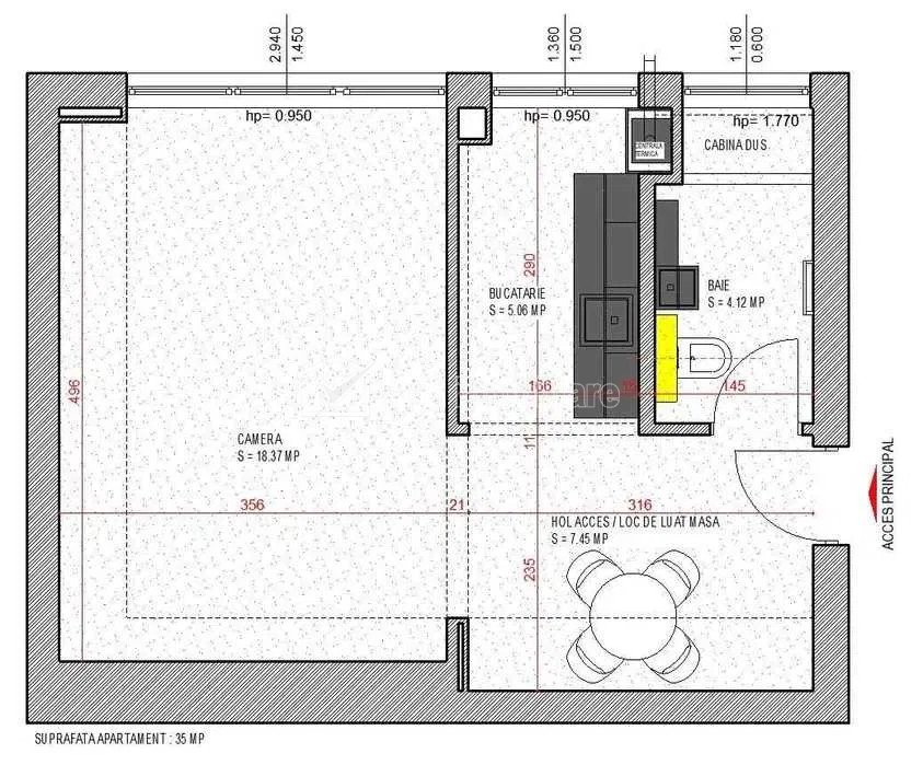 Lakás 1 szobák eladó on Cluj-napoca, Zóna Grigorescu Cluj-Napoca, Grigorescu 1 szoba • 35 m2 • 1 fürdőszoba • emelet földszint/9 • decomandatfinisat • mobilat partial eladási ár 98 000 € + 7 + 4 Eladott Jellemzők Ingatlan típusa Lakás Szobák száma 1 Konyhák száma 1 Fürdők száma 1 Parkoló nem Beépített terület 42 m2 Hasznos terület 35 m2 Beosztás Decomandat Komfort 1 Emelet földszint/9 ...épített Tégla Az apartman leírása A Welt Imobiliare Ingatlanügynökség ajánlata eladás lakás-val 1 szoba, Zóna Grigorescu. Lakás Komfort 1 decomandat egy tömbben 9 emelet, területén 1 konyha, 1 fürdőszoba .Lakás a finisat területén parketta, járólap, Lemosható fal, hőközpont, Gázóra. Bizonyos felületek között: izolatii termice (bloc izolat termic), pereti (vopsea lavabila, var), podele (parchet, gresie), usa intrare (metal) A felszereltségek közül megemlítjük: alte spatii utile (boxa la subsol), bucatarie (mobilata), contorizare (contor gaz), mobilat (partial), dotari imobil (interfon) Ingatlan azonosítója - P38012 Közművek, Belső kialakítás Általános közművek: Villanyáram, Víz, Gáz, CsatornázásFűtésrendszer Távfűtés, Hőközpont, RadiátorokBelső kialakítás Parketta, Járólap, Lemosható falFelszereltség Gázóra Megtekintések száma: 1720 Frissítve: 2024-01-22 13:18:15