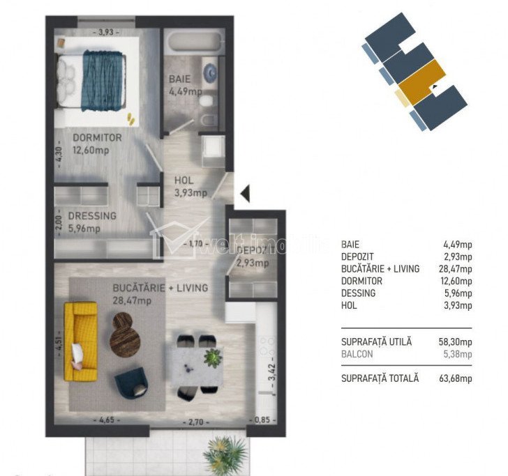 + 10 + 7 Eladott Jellemzők Ingatlan típusa Lakás Szobák száma 2 Konyhák száma 1 Fürdők száma 1 Erkélyek száma 1 Parkoló nem Beépített terület 69 m2 Hasznos terület 58.3 m2 Beosztás Semidecomandat Emelet 2/3 Az apartman leírása A Welt Imobiliare Ingatlanügynökség ajánlata eladás lakás-val 2 szobák, található Baciu. Lakás semidecomandat helyezkedik el emelet 2 egy tömbben 3 emelet, területén 1 konyha, 1 fürdőszoba , 1 erkély . területén Lemosható fal, hőközpont. Bizonyos felületek között: pereti (vopsea lavabila), usa intrare (metal) A felszereltségek közül megemlítjük: mobilat (nemobilat), dotari imobil (spatii agrement, curte comuna) Ingatlan azonosítója - P36627 Közművek, Belső kialakítás Általános közművek: Villanyáram, Víz, Gáz, CsatornázásFűtésrendszer Hőközpont, RadiátorokBelső kialakítás Lemosható fal Megtekintések száma: 1970 Frissítve: 2024-01-03 15:26:49