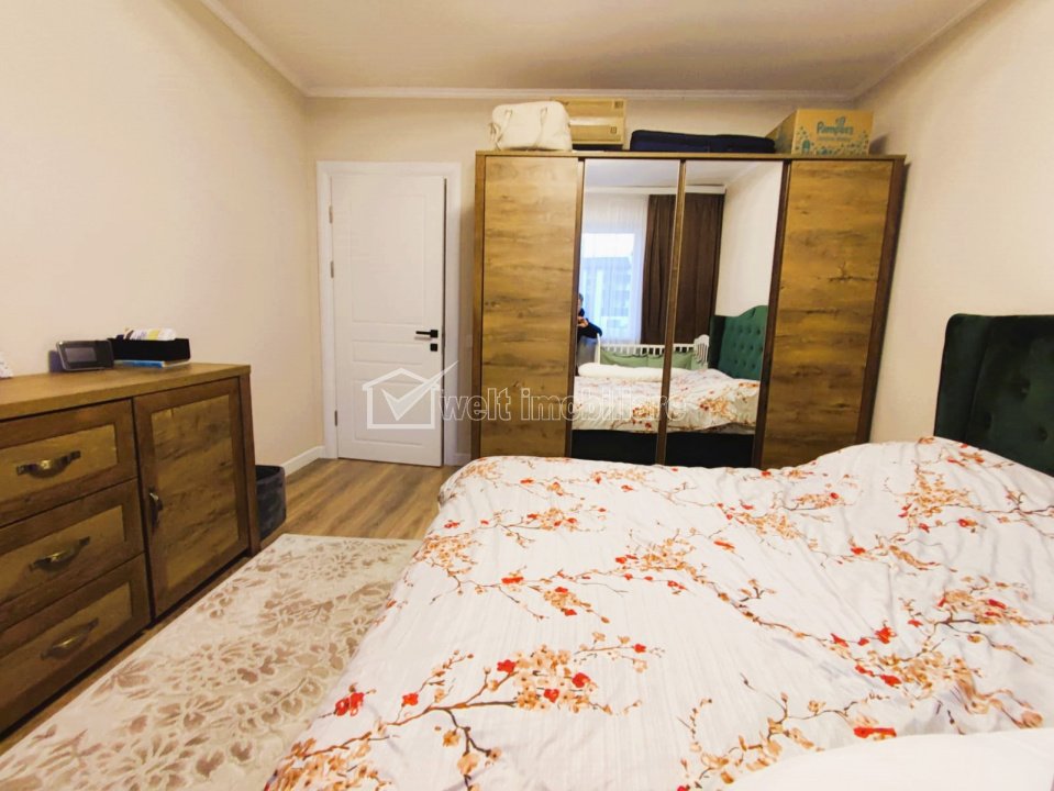 Lakás 3 szobák eladó on Apahida Apahida 3 szobák • 65 m2 • 1 fürdőszoba • emelet 1/2 • decomandatfinisat • mobilat complet eladási ár 157 000 € + 11 + 8 Jellemzők Ingatlan típusa Lakás Szobák száma 3 Konyhák száma 1 Fürdők száma 1 Erkélyek száma 1 Parkoló igen Beépített terület 88 m2 Hasznos terület 65 m2 Beosztás Decomandat Komfort 1 Emelet 1/2 ...épített Tégla Építési év 2022 Az apartman leírása A Welt Imobiliare eladásra kínál egy 3 szobás lakást. A 65 nm hasznos alapterület a következőképpen oszlik meg: - előszoba - nappali - 2 hálószoba - konyha - fürdőszoba (ablakos) - gardrób Ezen felül egy 10 nm-es erkély is tartozik hozzá. A lakás modern módon van berendezve, bútorozva és felszerelve. A ház hőszigetelt. A közvetlen közelben található egy élelmiszerbolt és egy játszótér. 2 perces autóútra található egy tömegközlekedési állomás, 5 perces autóútra egy Lidl piac, 10 perces autóútra pedig a Kolozsvári Nemzetközi Repülőtér. A lakáshoz tartozik egy föld feletti parkolóhely, ami benne van az árban. További részletekért kérjük, forduljon hozzánk bizalommal! Ingatlan azonosítója - P53022 Közművek, Belső kialakítás Általános közművek: Villanyáram, Víz, Gáz, CsatornázásFűtésrendszer Hőközpont, PadlófűtésKlimatizálás LégkondicionáltBelső kialakítás Parketta, Járólap, Csempe, Lemosható fal, Beltéri ajtókFelszereltség Gázóra Megtekintések száma: 55 Frissítve: 2026-02-14 11:27:04