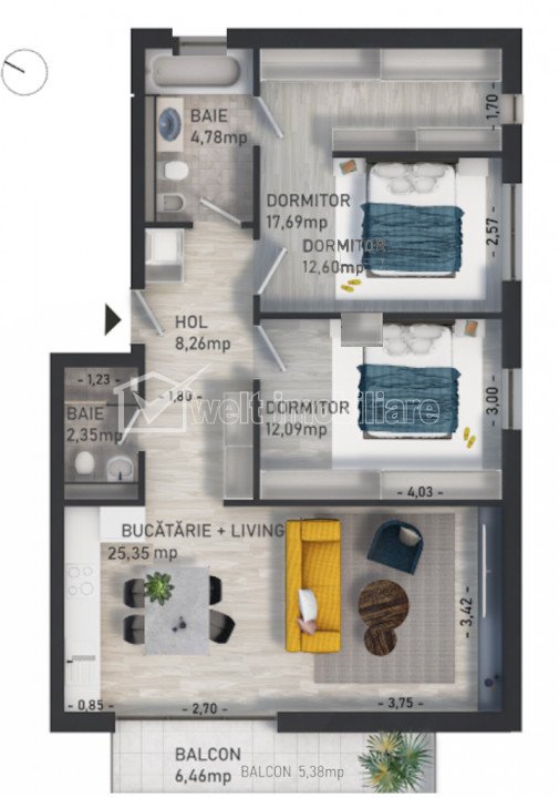 Jellemzők Ingatlan típusa Lakás Szobák száma 3 Konyhák száma 1 Fürdők száma 2 Erkélyek száma 1 Parkoló nem Beépített terület 89 m2 Hasznos terület 71 m2 Beosztás Semidecomandat Komfort Marit Emelet 4/4 ...épített Tégla Az apartman leírása Megvételre kínálunk egy 2 szobás lakást a 4. emeleten, nappali + konyha, előszoba, öltöző, 2 hálószoba, 2 fürdőszoba és erkély. Hasznos alapterület 71 nm, erkély 6 nm. A lakás félkész állapotban átadásra kerül, a beépítésekkel, saját CT, bejáratnál fém ajtó, dupla üvegezésű ablakok, kaputelefon. Kivitelre, bútorozásra, felszerelésre van lehetőség, kedvező áron. További részletekért vagy megtekintés időpontjának egyeztetéséért ne habozzon kapcsolatba lépni velünk. Ingatlan azonosítója - P40663 Közművek, Belső kialakítás Általános közművek: Villanyáram, Víz, Gáz, CsatornázásFűtésrendszer HőközpontFelszereltség Gázóra Megtekintések száma: 2322 Frissítve: 2025-03-31 15:01:04