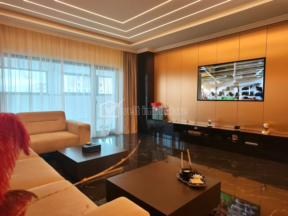 + 12 + 9 Jellemzők Ingatlan típusa Penthouse Szobák száma 3 Konyhák száma 1 Fürdők száma 2 Erkélyek száma 2 Teraszok száma 2 Garázsok száma 2 Parkoló igen Beépített terület 200 m2 Hasznos terület 110 m2 Beosztás Decomandat Komfort Marit Emelet 3/3 ...épített Beton Építési év 2016 Az apartman leírása Luxust, teret és egyben nyugalmat keres? A Welt Imobiliare felhívja a figyelmét egy exkluzív penthouse megvásárlásának lehetőségére a Zorilor Sud - Europa negyedben, a Leroy Merlin negyedben - Calea Turzii-ban, egy S+3+ER épület félreeső emeletén, lifttel a mélygarázsból. Az épület legfelső emeletén található, kiváló panorámás kilátást nyújt. Ízlésesen berendezett és 110 nm hasznos területen terül el, amelyhez egy 60 nm-es zárt és fedett terasz, valamint 2 erkély/terasz tartozik, amelyek további 20 nm-t tesznek ki, így ez az épület a kényelem és a luxus teljes csomagját kínálja. Ugyanakkor a 130 nm-es tetőterasz is igény szerint kialakítható. Ideális felosztás egy elegáns életteret biztosítva az alábbiak szerint: - nappali étkezővel és konyhával - nyitott tér - kijárattal a 60 nm-es zárt és szigetelt teraszra, padlófűtéssel és jakuzzival felszerelve; - 2 hálószoba - az egyik tágas gardróbszobával, a másik, a házassági, gardróbszobával és saját fürdőszobával rendelkezik. Mindkét hálószobából kijárat nyílik az erkélyre/teraszra. - 2 fürdőszoba, előszoba. A burkolatok és a bútorok jó minőségűek, Olaszországból importáltak, az ingatlan teljesen bútorozottan és felszerelten kerül értékesítésre. A 60 nm-es fedett és szigetelt terasz, padlófűtéssel és jakuzzival, második nappaliként, hobbihelyiségként vagy bármilyen más kívánt térként is használható. A háztömb udvarához és a mélygarázshoz való hozzáférést sorompó és automata kapuk védik, távirányítóval. Az ár két parkolóhelyet is tartalmaz a mélygarázsban. Ingatlan azonosítója - P53058 Közművek, Belső kialakítás Általános közművek: Villanyáram, Víz, Gáz, CsatornázásFűtésrendszer Hőközpont, PadlófűtésKlimatizálás LégkondicionáltBelső kialakítás Járólap, CsempeFelszereltség Gázóra Megtekintések száma: 50 Frissítve: 2026-02-04 16:11:55