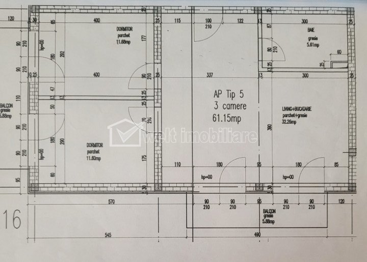 Lakás 3 szobák eladó on Floresti Floresti, Zóna Porii 3 szobák • 61.15 m2 • 1 fürdőszoba • emelet 2/3 • semidecomandatfinisat • mobilat complet eladási ár 114 900 € + 10 + 7 Eladott Jellemzők Ingatlan típusa Lakás Szobák száma 3 Konyhák száma 1 Fürdők száma 1 Erkélyek száma 2 Parkoló igen Beépített terület 85 m2 Hasznos terület 61.15 m2 Beosztás Semidecomandat Komfort 1 Emelet 2/3 Építési év 2012 Az apartman leírása A Welt Imobiliare eladásra kínál egy ikerházas 3 szobás lakást Porii negyedben, Florestiben. A lakás egy új épület 2. emeletén található, 3 szintes. 61,15 m² hasznos felülettel a válaszfalak kialakítása a következőképpen történt: - 1 nyitott terű nappali teljesen felszerelt konyhával és étkezővel, ahonnan ki lehet jutni az erkélyre - 1 hálószoba franciaággyal, kovácsoltvasból, 4 m-es öltözővel és erkéllyel - 1 hálószoba, gyerekszobaként berendezett - 1 modern fürdőszoba zuhanyzóval - 2 erkély - hall A lakás természetes fényével kitűnik, a nagy ablakoknak és tájolásnak köszönhetően kellemes és pihentető környezetet teremt egész nap. Az otthon a modern felszereltséggel is rendelkezik, beleértve a hatékony fűtési rendszert és a legmodernebb berendezéseket, amelyek kényelmes és gazdaságos élményt nyújtanak. Az eladó ingatlan ideális helyen, tömegközlekedési állomásoktól, üzletektől, bevásárlóközpontoktól és erdőtől pár lépésre található, így tökéletes egyensúlyt kínál a városi megközelíthetőség és a természet nyugalma között. Kikészítve és bútorozva eladó, CF-es kültéri parkoló vásárlási lehetőséggel. További részletekért ne habozzon kapcsolatba lépni velünk! Ingatlan azonosítója - P46286 Közművek, Belső kialakítás Általános közművek: Villanyáram, Gáz, CsatornázásFűtésrendszer Hőközpont, RadiátorokBelső kialakítás Parketta, Járólap, Csempe, Lemosható fal, Beltéri ajtók Megtekintések száma: 805 Frissítve: 2025-03-31 12:27:17
