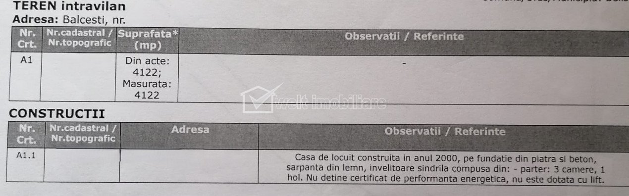 Ház 3 szobák eladó on Balcesti (belis), Zóna Centru Balcesti (Belis), Centru 3 szobák • 60 m2 • 4100 m2 telek eladási ár alkudható 65 000 € 61 900 € + 4 Eladott Jellemzők Ingatlan típusa Ház Szobák száma 3 Konyhák száma 1 Parkoló nem Pince nem Kert nem Hasznos terület 60 m2 Beépített terület 80 m2 Telek területe 4100 m2 Utcafront 14 m Építési év 2000