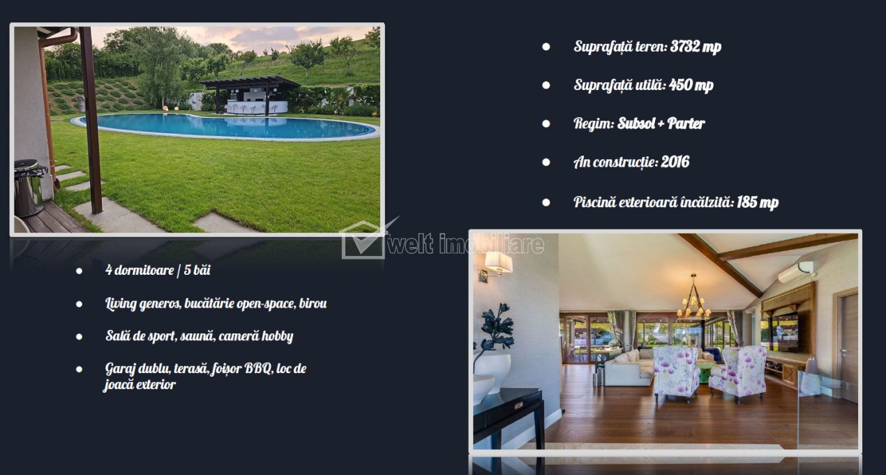 Ház 5 szobák eladó on Rediu Rediu 5 szobák • 450 m2 • 3730 m2 telekmobilat lux eladási ár 1 390 000 € + 16 + 13 Jellemzők Ingatlan típusa Ház Szobák száma 5 Konyhák száma 1 Fürdők száma 5 Garázsok száma 1 Parkoló igen Pince nem Kert igen Hasznos terület 450 m2 Beépített terület 540 m2 Telek területe 3730 m2 Utcafront 30 m Tartószerkezet Tégla Építési év 2016