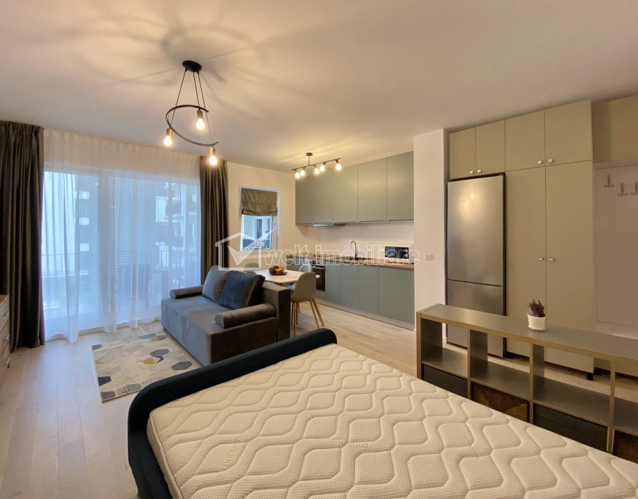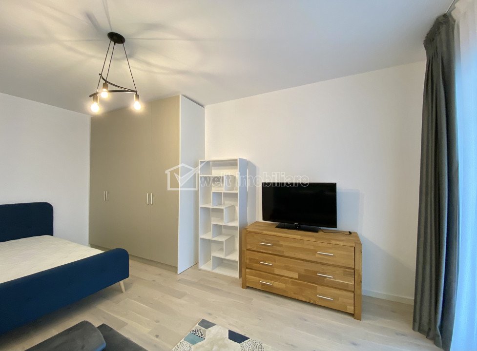 Inchiriere apartament cu 1 camera, optional garaj, Record Park, centru Cluj-Napoca, Centru 1 camera • 38 m2 • 1 baie • etaj 2/6 • semidecomandatfinisat • mobilat complet pret chirie 390 €/luna + 13 + 10 Inchiriat Caracteristici Tip locuinta Apartament Tip imobil bloc de apartamente Numar camere 1 Numar bucatarii 1 Numar bai 1 Numar balcoane 1 Numar garaje 1 Parcare nu Supr. construita 49 m2 Suprafata utila 38 m2 Compartimentare Semidecomandat Confort 1 Etaj 2/6 Construit cu Caramida An constructie 2021 Disponibilitate imediat Descrierea Apartamentului Welt Imobiliare ofera spre inchiriere apartament cu 1 camera, ultrafinisat si mobilat, situat în zona semicentrală, într-un ansamblu rezidențial nou și modern - Record Park. Apartamentul se află la prima inchiriere, este poziționat la etajul 2 al imobilului, iar orientarea spre curtea interioara amenajata cu spatiu verde, oferă multă liniste și astfel un mediu foarte plăcut. Desfasurat pe o suprafata generoasa de 38 mp, se ofera complet mobilat si utilat modern, totul fiind de o foarte buna calitate. Apartamentul beneficiaza de centrala pe imobil cu incalzire in pardoseala. Daca se doreste, se poate beneficia contra cost si un loc de parcare in garajul subteran! Referindu-ne la Record Park, acesta beneficiaza de un supermarket Mega Image la parter, spatii verzi, zone recreative, restaurant, acces facil la World Class, iar pozitionarea langa cladirile The Office si distanta foarte mica fata de zona ultracentrală, fac din acest ansamblu o alegere potrivita si un loc excelent pentru locuit. ID Proprietate - P28970 Utilitati, Finisaje Utilitati generale: Electricitate, Apa, Gaz, Canalizare, Cablu TVSistem de incalzire Centrala de imobil, Calorifere Finisaje: Izolatii termice (Bloc izolat termic), Pereti (Vopsea lavabila, Faianta), Podele (Parchet, Gresie), Ferestre cu geam termopan (PVC), Usa intrare (Metal), Usi interior (Lemn) Dotari: Bucatarie (Mobilata, Utilata), Contorizare (Apometre, Contor caldura), Mobilat (Complet), Dotari imobil (Videointerfon, Lift, Spatii agrement, Curte comuna), Electrocasnice (Masina de spalat rufe, Frigider, Aragaz, Masina de spalat vase, TV, Cuptor microunde, Hota) Vecinatati si puncte de interes in zona Liceul Avram Iancu, The Office Amenajare strazi (Asfaltate), Iluminat stradal, Mijloace de transport in comun Numar vizualizari: 3349