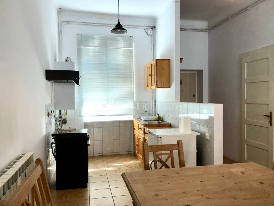 Apartament de închiriat zona centrală, 75mp, o cameră, open space Cluj-Napoca, Centru 1 camera • 75 m2 • 1 baie • etaj 1finisat • mobilat complet pret chirie 600 €/luna + 9 + 6 Inchiriat Caracteristici Tip locuinta Apartament Numar camere 1 Numar bucatarii 1 Numar bai 1 Parcare nu Supr. construita 90 m2 Suprafata utila 75 m2 Etaj 1 An constructie 2000 Disponibilitate imediat Descrierea Apartamentului Va prezentăm oportunitatea de a închiria un apartament de o cameră, situat în zona centrală din Cluj-Napoca. Apartamentul dispune de o suprafață utilă de 75 mp și este compus dintr-o cameră open space, bucătărie, baie, hol și debara. Apartamentul se poate închiria mobilat sau nemobilat, după preferință. Proximitatea față de Universitatea Babes Balyai, Facultatea de Drept, Colegiul Național "Emil Racoviță" și amplasarea sa ultracentrală îl face să fie o alegere excelentă pentru oricine, de la tineri, la firme, până la antreprenori. Apartamentul este perfect pentru a fi utilizat ca un spațiu de birouri, dar, totodată, este o alegere ideală pentru a fi locuit. Acesta are și o curte comună interioară. Pentru a afla mai multe detalii referitoare la această proprietate, contactați-ne acum! ID Proprietate - P39409 Utilitati, Finisaje Utilitati generale: Electricitate, Apa, Gaz, CanalizareSistem de incalzire Centrala termica, Calorifere Finisaje: Pereti (Vopsea lavabila, Faianta), Podele (Parchet, Gresie), Ferestre cu geam termopan (Lemn), Usa intrare (Lemn), Usi interior (Lemn) Dotari: Alte spatii utile (Debara), Bucatarie (Mobilata, Utilata), Contorizare (Apometre, Contor gaz), Mobilat (Complet), Dotari imobil (Curte comuna), Electrocasnice (Frigider, Aragaz, Hota) Vecinatati si puncte de interes in zona Universitatea Babes Balyai, Facultatea de Drept, Facultatea de Studii Europene, Colegiul Național Amenajare strazi (Asfaltate) Numar vizualizari: 1162