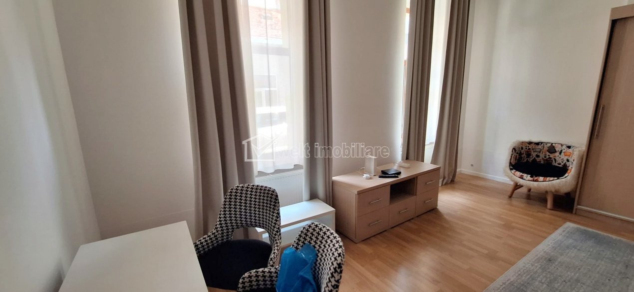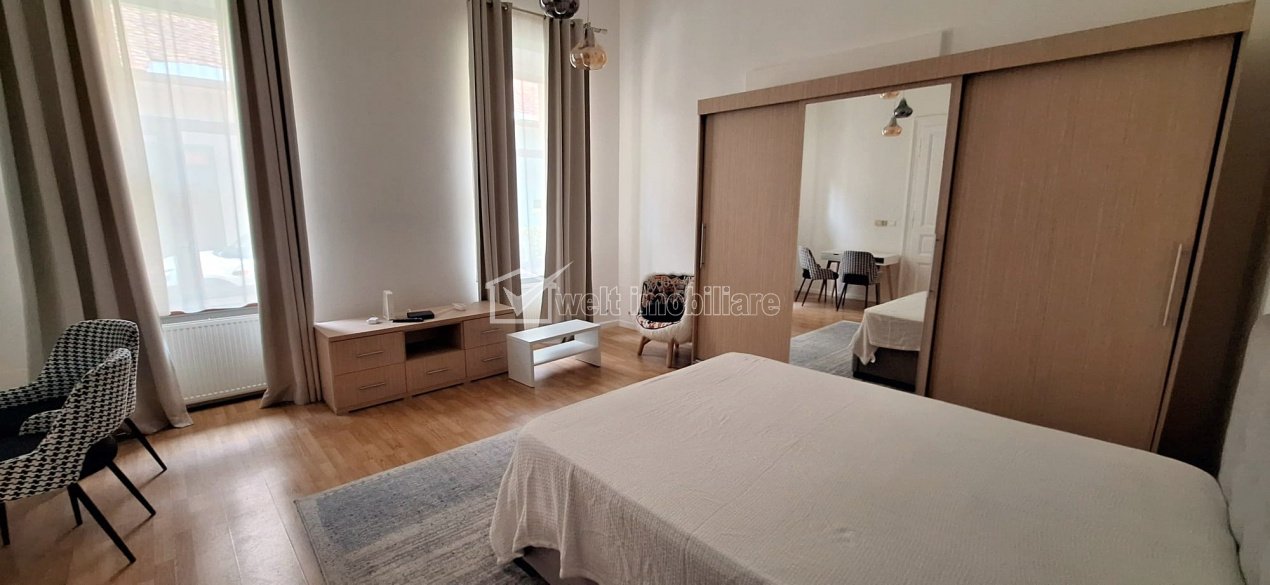 Inchiriere apartament 1 camera, ultracentral, confort lux, parcare Cluj-Napoca, Centru 1 camera • 54 m2 • 1 baie • etaj parter/1 • decomandatmobilat complet pret chirie negociabil 650 €/luna + 8 + 5 Inchiriat Caracteristici Tip locuinta Apartament Tip imobil casa/vila Numar camere 1 Numar bucatarii 1 Numar bai 1 Parcare da Supr. construita 70 m2 Suprafata utila 54 m2 Compartimentare Decomandat Confort Marit Etaj parter/1 Construit cu Caramida Disponibilitate imediat Descrierea Apartamentului Welt Imobiliare va ofera spre inchiriere apartament modern finisat si utilat, situat in centrul Clujului, in zona strazii Eroilor. Acesta se afla la parterul unui imobil cu 1 etaj. A fost recent renovat si dispune de loc de parcare in curtea interioara, accesul fiind cu bariera. Cei 54 de mp sunt compartimentati astfe: living, bucatarie cu loc de luat masa baie modern finisata si un spatiu de depozitare. Inaltimea de trei metri a tavanelor va confera o senzatie speciala de spatiu si libertate. Se inchiriaza complet mobilat si utilat modern. Nu ratati aceasta ocazie rara de a locui intr-un spatiu generos, ultracentral, intr-o zona selecta a orasului! Pentru mai multe detalii sau pentru programarea unei vizionari nu ezitati sa ma contactati. ID Proprietate - P48273 Utilitati, Finisaje Utilitati generale: Electricitate, Apa, Gaz, Canalizare, Cablu TVSistem de incalzire Centrala termica, Calorifere Finisaje: Izolatii termice (Exterior), Pereti (Vopsea lavabila, Faianta), Podele (Parchet, Gresie), Ferestre cu geam termopan (PVC), Usa intrare (Metal), Usi interior (Lemn) Dotari: Alte spatii utile (Debara), Bucatarie (Mobilata, Utilata), Contorizare (Apometre, Contor gaz), Mobilat (Complet), Dotari imobil (Curte comuna), Electrocasnice (Masina de spalat rufe, Frigider, Masina de spalat vase, Cuptor microunde, Hota), Diverse (Telecomanda poarta acces auto) Vecinatati si puncte de interes in zona Amenajare strazi (Asfaltate), Iluminat stradal, Mijloace de transport in comun Numar vizualizari: 584