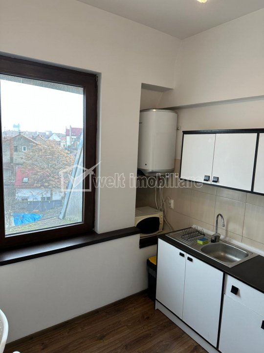 Caracteristici Tip locuinta Apartament Tip imobil bloc de apartamente Numar camere 1 Parcare nu Suprafata utila 28 m2 Compartimentare Semidecomandat Confort 1 Etaj 2/2 Construit cu Caramida Disponibilitate imediat Descrierea Apartamentului Welt Imobiliare inchiriaza un modern si cochet apartament de 1 camera, situat ultracentral, in Piata Lucian Blaga. Apartamentul se afla la mansarda unei cladiri istorice, oferind o panorama frumoasa asupra centrului vechi. Masoara 28 mp si este finisat modern, cu toate dotarile necesare. Este ideal pentru studentii ce studiaza in Cluj Napoca, fiind la maxim 5 minute de mers pe jos de toate universitatile localizate in centru. Pentru alte detalii sau vizionare, nu ezitati sa ne contactati. ID Proprietate - P49223 Utilitati, Finisaje Utilitati generale: Electricitate, Apa, Gaz, CanalizareSistem de incalzire Centrala termica, Calorifere Finisaje: Pereti (Vopsea lavabila, Faianta), Podele (Parchet, Gresie), Ferestre cu geam termopan (PVC), Usa intrare (Metal), Usi interior (Lemn) Vecinatati si puncte de interes in zona UMF, Casa de Cultura, Primaria Cluj Napoca, Biblioteca Centrala Numar vizualizari: 715