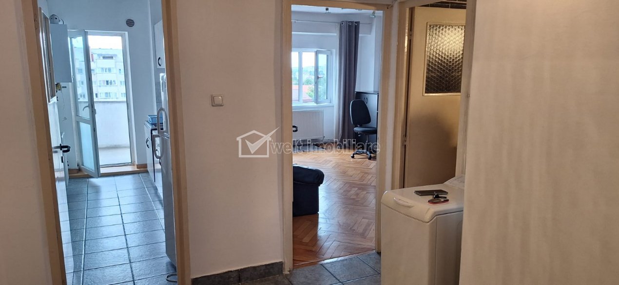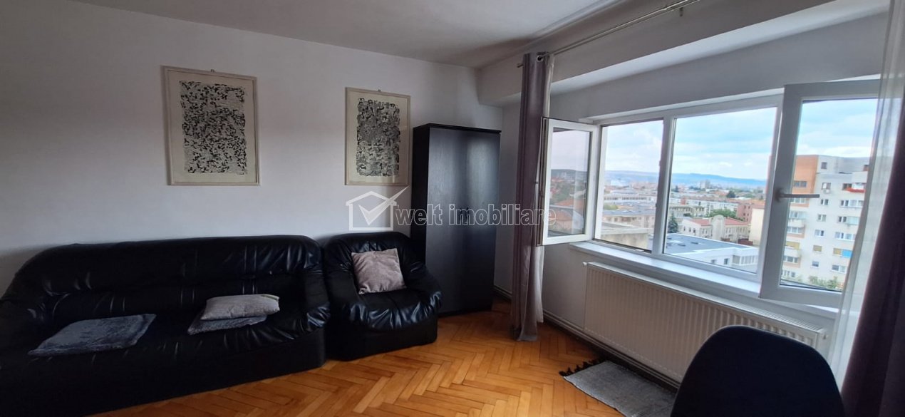 Inchiriere Apartament 1 camera, confort sporit, semicentral, Titulescu Cluj-Napoca, Gheorgheni 1 camera • 42 m2 • 1 baie • etaj 8/8 • decomandat pret chirie negociabil 420 €/luna + 9 + 6 Inchiriat Caracteristici Tip locuinta Apartament Tip imobil bloc de apartamente Numar camere 1 Numar bucatarii 1 Numar bai 1 Numar balcoane 1 Parcare nu Supr. construita 55 m2 Suprafata utila 42 m2 Compartimentare Decomandat Confort 1 Etaj 8/8 Construit cu BCA Disponibilitate imediat Descrierea Apartamentului Va propunem spre inchiriere un apartament situat in zona semicentrala a orasului, la 2 minute de Piata Cipariu. Apartamentul se afla la etajul 8 al unui imobil cu lift, construit in anii '90. Are o suprafata utila de 42 de mp, avand o camera foarte mare, o bucatarie spatioasa, un hol mare si o baie. Are de asemenea si un balcon deschis. Dispune de Centrala Termica proprie. In apropiere, se gasesc, magazine, banci, statia de transport in comun, iar pe jos pana in centru nu se fac mai mult de 10 minute. Poate fi vizitat, cu programare prealabila. Disponibil din 07.07.2025 ID Proprietate - P48729 Utilitati, Finisaje Utilitati generale: Electricitate, Apa, Gaz, CanalizareSistem de incalzire Centrala termica Vecinatati si puncte de interes in zona Iulius Mall, FSEGA, Parc Sportiv Gheorgheni Numar vizualizari: 539