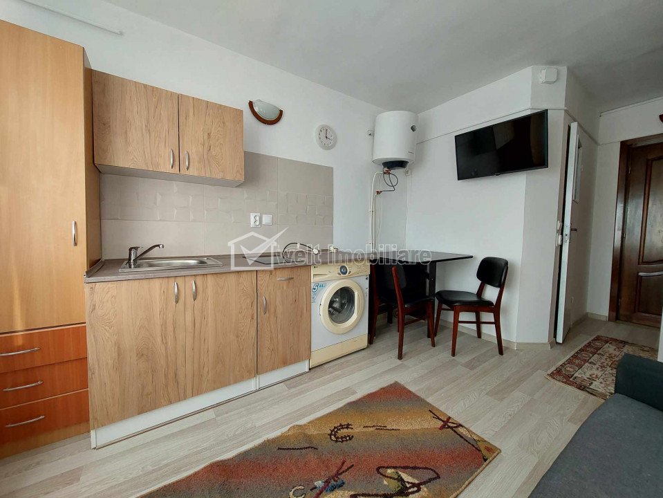 Garsoniera, zona Iulius Mall Cluj-Napoca, Intre Lacuri 1 camera • 15 m2 • 1 baie • etaj 4/4finisat pret chirie negociabil 290 €/luna 270 €/luna + 5 Inchiriat Caracteristici Tip locuinta Apartament Tip imobil bloc de apartamente Numar camere 1 Numar bucatarii 1 Numar bai 1 Parcare nu Supr. construita 19 m2 Suprafata utila 15 m2 Confort 2 Etaj 4/4 Disponibilitate imediat Descrierea Apartamentului Welt Imobiliare va ofera spre inchiriere o garsoniera situata in cartierul Intre Lacuri, ideala pentru locuit, in apropiere de mijloacele de transport in comun si alte facilitati cotidiene. Este pozitionata la etajul 4, are 15 mp care sunt compartimentati astfel: 1 camera open-space, antreu, 1 baie. Garsoniera este conectata la electricitate si are geamuri termopan cu tamplarie PVC si usa de la intrare metalica. Zona in care se afla este una linistita si accesibila. Ocupabila imediat! Pentru mai multe detalii si stabilirea unei vizionari, nu ezitati sa ne contactati. ID Proprietate - P49180 Utilitati, Finisaje Utilitati generale: Electricitate, Apa, Canalizare Finisaje: Pereti (Vopsea lavabila, Faianta), Podele (Parchet, Gresie), Usa intrare (Metal) Dotari: Bucatarie (Mobilata, Utilata), Contorizare (Apometre), Dotari imobil (Interfon), Electrocasnice (Masina de spalat rufe, Frigider) Vecinatati si puncte de interes in zona Iulius Mall, FSEGA, Parc Sportiv Gheorgheni Amenajare strazi (Asfaltate, Betonate), Iluminat stradal, Mijloace de transport in comun Numar vizualizari: 415