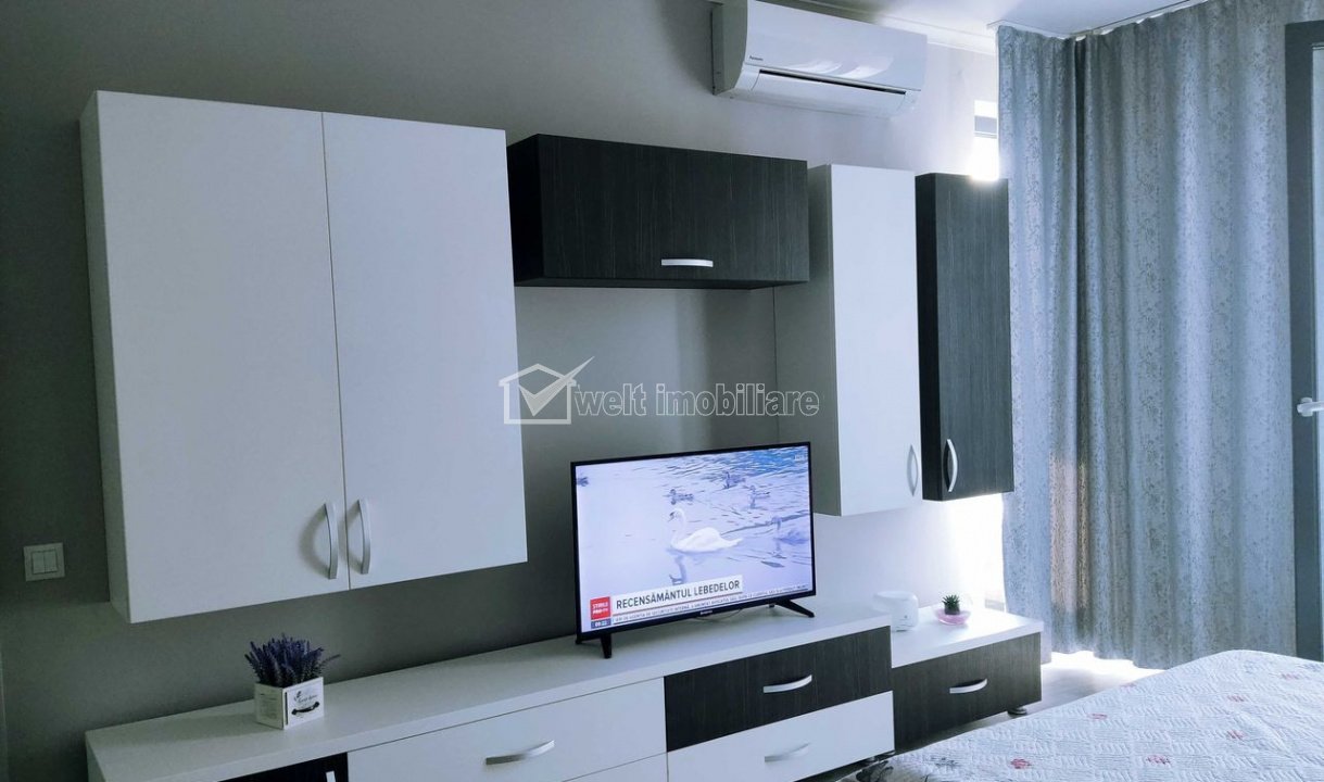 Inchiriere apartament 1 camera Park Lake Cluj-Napoca, Intre Lacuri 1 camera • 40 m2 • 1 baie • etaj 5/10 • decomandat pret chirie 550 €/luna + 7 + 4 Caracteristici Tip locuinta Apartament Tip imobil bloc de apartamente Numar camere 1 Numar bucatarii 1 Numar bai 1 Numar balcoane 1 Parcare da Supr. construita 50 m2 Suprafata utila 40 m2 Compartimentare Decomandat Confort 1 Etaj 5/10 Construit cu Caramida An constructie 2019 Disponibilitate imediat Descrierea Apartamentului Welt Imobiliare va ofera spre inchiriere un apartament cu o camera decomandat, cu o suprafață utilă de 40 mp, la etajul 5 al unui imobil construit in 2019. Este ideală pentru o persoană sau un cuplu, având un living modern și confortabil, cu pardoseli laminate. Baia este dotată cu finisaje de calitate și include duş, toaletă și chiuvetă. Proprietatea dispune de un balcon cu vedere spectaculoasă. Se afla in complexul imobiliare Park Lake, aproape de diverse facilități. În apropiere se află parcuri, cafenele și restaurante, unde poți savura mese delicioase. Transportul în comun este accesibil, cu stații de autobuz. De asemenea, magazinele și centrele comerciale sunt la o distanță foarte mică, oferind tot ce ai nevoie. Dacă va interesează acest apartament, nu ezitati să ne contactati pentru mai multe detalii! ID Proprietate - P54571 Utilitati, Finisaje Utilitati generale: Electricitate, Apa, Gaz, Canalizare, Cablu TVSistem de incalzire Centrala termica, CalorifereClimatizare Aer conditionat Finisaje: Izolatii termice (Exterior), Pereti (Vopsea lavabila, Faianta), Podele (Parchet, Gresie), Ferestre cu geam termopan (PVC), Usa intrare (Metal), Usi interior (Lemn) Dotari: Bucatarie (Mobilata, Utilata), Contorizare (Apometre, Contor gaz), Dotari imobil (Videointerfon, Lift), Electrocasnice (Masina de spalat rufe, Frigider, Aragaz, TV, Cuptor microunde, Hota), Diverse (Telecomanda poarta acces auto) Vecinatati si puncte de interes in zona Iulius Mall, FSEGA, Kaufland, Lidl Amenajare strazi (Asfaltate), Iluminat stradal, Mijloace de transport in comun Numar vizualizari: 125