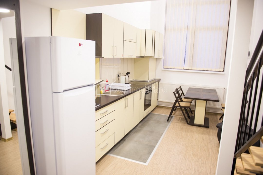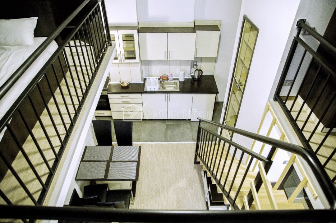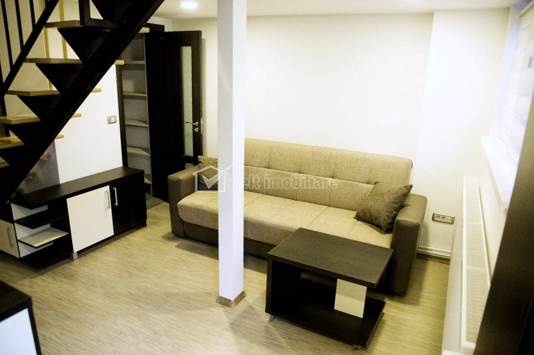Apartament cu 1 camere, dispus pe 2 niveluri, finisat, mobilat si utilat ! Cluj-Napoca, Manastur 1 camera • 40 m2 • 1 baie • etaj parter/8 • decomandatfinisat • mobilat complet pret chirie 500 €/luna + 9 + 6 Inchiriat Caracteristici Tip locuinta Apartament Tip imobil bloc de apartamente Numar camere 1 Numar bucatarii 1 Numar bai 1 Parcare nu Supr. construita 45 m2 Suprafata utila 40 m2 Compartimentare Decomandat Confort 1 Etaj parter/8 Construit cu BCA An constructie 1990 Disponibilitate imediat Descrierea Apartamentului Welt Imobiliare inchiriaza apartamente cu 1 camera, situate in Manastur, zona Calvaria, dispuse pe 2 niveluri, cu suprafete intre 25 si 40 mp utili. Apartamentele se compun din bucatarie cu zona de zi/living, iar la supanta se regaseste un pat matrimonial si dulapuri pentru depozitare. Se inchiriaza complet mobilate si utilate. Se afla la 15 minute de mers pe jos de USAMV sau Sala Sporturilor/Cluj Arena iar cea mai apropiata statie de bus/tramvai se afla la 2 minute. Pretul chiriei nu include cheltuieile curente ce se ridica la aproximativ 100 euro/luna inclusiv internet. Pentru detalii si vizionare, nu ezitati sa ne contactati. ID Proprietate - P50414 Utilitati, Finisaje Utilitati generale: Electricitate, Apa, CanalizareSistem de incalzire Centrala termica, Calorifere Finisaje: Pereti (Vopsea lavabila, Faianta), Podele (Parchet, Gresie), Ferestre cu geam termopan (PVC), Usa intrare (Metal, PVC) Dotari: Bucatarie (Mobilata, Utilata), Mobilat (Complet), Electrocasnice (Masina de spalat rufe, Frigider, Cuptor microunde, Hota) Vecinatati si puncte de interes in zona Biserica Calvaria, Parcul Babes, USAMV Amenajare strazi (Asfaltate), Iluminat stradal, Mijloace de transport in comun Numar vizualizari: 1128