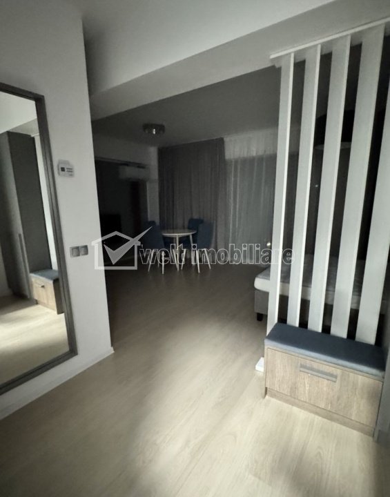 Apartament modern, 1 cameră, cartier Mănăștur Cluj-Napoca, Manastur 1 camera • 45 m2 • 1 baie • etaj 3/25 • semidecomandatfinisat • mobilat complet pret chirie 550 €/luna + 6 + 3 Caracteristici Tip locuinta Apartament Tip imobil bloc de apartamente Numar camere 1 Numar bucatarii 1 Numar bai 1 Numar balcoane 1 Parcare da Supr. construita 61 m2 Suprafata utila 45 m2 Compartimentare Semidecomandat Confort 1 Etaj 3/25 Construit cu Beton Disponibilitate imediat Descrierea Apartamentului Vă propunem spre închiriere un apartament cu o cameră, situat în cartierul Mănăștur, la etajul 3 al unui imobil cu 25 etaje. Locuința este potrivită pentru o persoană sau un cuplu care își dorește un spațiu confortabil, amplasat într-o zonă bine conectată a orașului. Apartamentul este compartimentat astfel: dormitor, bucătărie, baie, balcon. Apartamentul este mobilat și utilat. Două avantaje ale acestui apartament sunt parcarea inclusă și balconul, care reprezintă spațiul ideal pentru relaxare. Imobilul beneficiază de o poziționare foarte bună, cu acces rapid la mijloace de transport în comun, magazine, restaurante, farmacii, școli și alte puncte de interes. Pentru informații suplimentare sau pentru programarea unei vizionări, vă invităm să ne contactați. ID Proprietate - P54062 Utilitati, Finisaje Utilitati generale: Electricitate, Apa, Gaz, CanalizareSistem de incalzire Incalzire in pardosealaClimatizare Aer conditionat Finisaje: Izolatii termice (Exterior), Pereti (Vopsea lavabila, Faianta), Podele (Parchet, Gresie), Ferestre cu geam termopan (PVC), Usa intrare (Metal), Usi interior (Lemn) Dotari: Bucatarie (Mobilata, Utilata), Contorizare (Apometre), Mobilat (Complet), Electrocasnice (Masina de spalat rufe, Frigider, Aragaz, TV, Hota) Vecinatati si puncte de interes in zona Parcul Colina Amenajare strazi (Asfaltate), Iluminat stradal Numar vizualizari: 25