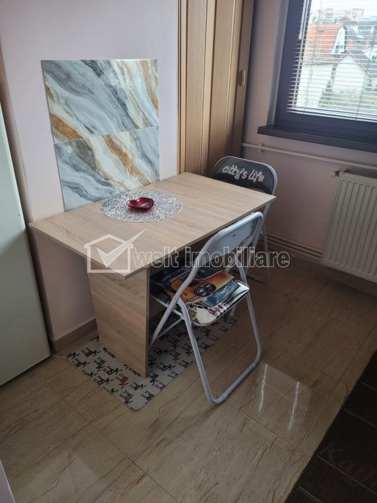 Apartament cu 1 camera, modern, zona Dorobantilor Cluj-Napoca, Marasti 1 camera • 40 m2 • 1 baie • etaj 2/8 • decomandatfinisat • mobilat complet pret chirie 450 €/luna + 15 + 12 Inchiriat Caracteristici Tip locuinta Apartament Tip imobil bloc de apartamente Numar camere 1 Numar bucatarii 1 Numar bai 1 Parcare nu Supr. construita 48 m2 Suprafata utila 40 m2 Compartimentare Decomandat Confort 1 Etaj 2/8 Construit cu Beton Disponibilitate imediat Descrierea Apartamentului Welt Imobiliare va propune spre inchiriere apartament decomandat, cu 1 camera, in zona Calea Dorobantilor, situat la 10 minute de Teatrul National. Apartamentul este situat la etajul 3 din 8, are centrală proprie, mobilier nou, finisaje moderne. Cei 40 de mp sunt compartimentati astfel: -dormitor, -hol, -bucatarie, -baie si un balcon de 6 mp. Este ocupabil imediat. Pentru mai multe detalii va invitam sa ne contactati. ID Proprietate - P45832 Utilitati, Finisaje Utilitati generale: Electricitate, Apa, Gaz, CanalizareSistem de incalzire Centrala termica, CalorifereClimatizare Aer conditionat Finisaje: Pereti (Vopsea lavabila, Faianta), Podele (Parchet, Gresie), Ferestre cu geam termopan (PVC), Usa intrare (Metal) Dotari: Bucatarie (Mobilata, Utilata), Contorizare (Apometre, Contor gaz), Mobilat (Complet), Dotari imobil (Interfon, Lift), Electrocasnice (Masina de spalat rufe, Frigider, Aragaz) Vecinatati si puncte de interes in zona Amenajare strazi (Asfaltate), Iluminat stradal, Mijloace de transport in comun Numar vizualizari: 1603