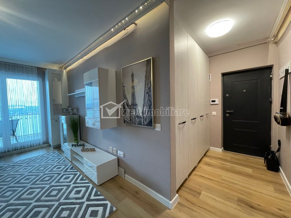 Apartament 2 camere, parcare, zona Grand Hotel Italia, cartier Buna Ziua Cluj-Napoca, Buna Ziua 2 camere • 52 m2 • 1 baie • etaj 8/8 • semidecomandatfinisat • mobilat lux pret chirie 650 €/luna + 7 + 4 Inchiriat Caracteristici Tip locuinta Apartament Tip imobil bloc de apartamente Numar camere 2 Numar bucatarii 1 Numar bai 1 Numar terase 1 Numar garaje 1 Parcare nu Supr. construita 62 m2 Suprafata utila 52 m2 Compartimentare Semidecomandat Confort Marit Etaj 8/8 Construit cu Caramida An constructie 2018 Disponibilitate Imediata Descrierea Apartamentului Welt Imobiliare va propune spre inchiriere un superb apartament cu 2 camere situat in apropierea Grand Hotel Italia, in cartierul Buna Ziua. Apartamentul este semidecomandat, cu un living open space cu bucataria, un dormitor, o baie si o terasa. Acesta dispune de o parcare subterana, la nivelul -2, inclusa in pretul chiriei. Se inchiriaza complet mobilat si utilat, asa cum se vede in poze. In apropiere sunt mijloacele de transport in comun, magazine, sala de fitness si piscina. Pentru mai multe informatii va rugam sa ne contactati! ID Proprietate - P30662 Utilitati, Finisaje Utilitati generale: Electricitate, Apa, Gaz, Canalizare, Cablu TVSistem de incalzire Centrala termica, Calorifere Finisaje: Izolatii termice (Exterior, Bloc izolat termic), Pereti (Vopsea lavabila, Faianta), Podele (Parchet, Gresie), Ferestre cu geam termopan (PVC), Usa intrare (Metal), Usi interior (Celulare) Dotari: Alte spatii utile (Terasa), Bucatarie (Mobilata, Utilata), Contorizare (Apometre, Contor gaz), Mobilat (Lux), Dotari imobil (Interfon, Lift), Electrocasnice (Masina de spalat rufe, Frigider, Aragaz, TV, Hota) Vecinatati si puncte de interes in zona Grand Hotel Italia Amenajare strazi (Asfaltate), Iluminat stradal, Mijloace de transport in comun Numar vizualizari: 1605