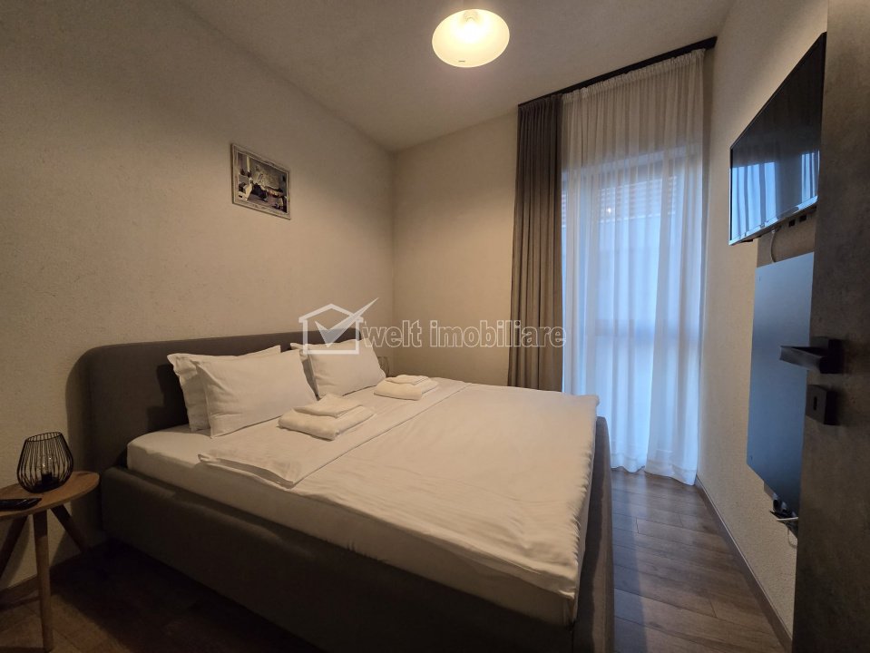 Apartament ultracentral de inchiriat, 2 camere, parcare subterana Cluj-Napoca, Centru 2 camere • 45 m2 • 1 baie • etaj 3/5 • semidecomandatmobilat lux pret chirie 695 €/luna + 7 + 4 Inchiriat Caracteristici Tip locuinta Apartament Tip imobil bloc de apartamente Numar camere 2 Numar bucatarii 1 Numar bai 1 Parcare da Supr. construita 54 m2 Suprafata utila 45 m2 Compartimentare Semidecomandat Confort Marit Etaj 3/5 Construit cu Caramida Disponibilitate imediat Descrierea Apartamentului Welt Imobiliare va propune spre inchiriere un apartament modern si elegant, situat ultracentral pe strada Somesului, intr-un imobil nou cu 5 etaje. Cu o suprafata de 45 mp, apartamentul imbina designul contemporan cu functionalitatea, fiind alegerea perfecta pentru cei care isi doresc confort si acces imediat la toate facilitatile orasului. Compartimentare: - living open space cu bucatarie complet mobilata si utilata - dormitor matrimonial - baie moderna cu finisaje de calitate Dotari si facilitati incluse in pret: - centrala termica proprie si incalzire in pardoseala - bucatarie complet echipata (vesela, tacamuri, cuptor cu microunde, frigider, plita electrica, cuptor electric incorporat, espressor Nespresso) - lenjerie de pat si prosoape - curatenie saptamanala inclusa in pretul chiriei la o data stabilita de comun acord - loc de parcare in parking subteran (acces cu lift auto) - internet WiFi de mare viteza (in apartament si spatiile comune) - Smart TV in zona de living - uscator de par, fier si masa de calcat, papuci de casa - supraveghere video in spatiile comune (interior-exterior) si in parcari - acces securizat cu yale smart (cod si cartela) Pozitionarea ultracentrala este completata de restaurante si terase aflate in imediata apropiere, inclusiv la parterul aparthotelului, oferind un plus de confort si exclusivitate. Acest apartament reprezinta o oportunitate rara pe piata, ideala pentru cei care doresc un stil de viata premium, cu tot confortul si avantajele centrului orasului. Pentru mai multe detalii sau pentru a programa o vizionare, echipa Welt Imobiliare va sta cu drag la dispozitie. ID Proprietate - P49942 Utilitati, Finisaje Utilitati generale: Electricitate, Apa, Gaz, CanalizareSistem de incalzire Centrala termica, Incalzire in pardoseala Finisaje: Izolatii termice (Bloc izolat termic), Pereti (Vopsea lavabila, Faianta), Podele (Parchet, Gresie), Ferestre cu geam termopan (PVC), Usa intrare (Metal) Dotari: Bucatarie (Mobilata, Utilata), Contorizare (Apometre, Contor gaz), Mobilat (Lux), Dotari imobil (Interfon, Lift, Spatii agrement), Electrocasnice (Masina de spalat rufe, Frigider, TV, Cafetiera, Cuptor microunde, Hota), Diverse (Senzor de fum, Sistem de alarma, Telecomanda poarta acces auto) Vecinatati si puncte de interes in zona Amenajare strazi (Asfaltate), Iluminat stradal, Mijloace de transport in comun Numar vizualizari: 1920