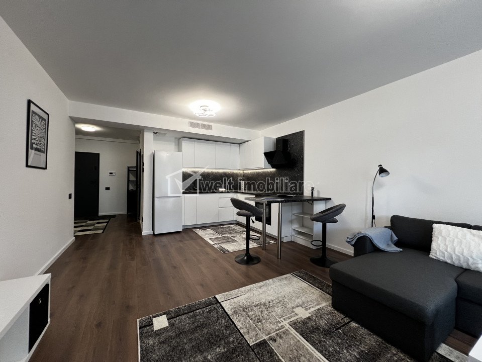 Apartament nou 66mp, gradina 20mp, ansamblul Liberty Residential Cluj-Napoca, Gara 2 camere • 66 m2 • 1 baie • etaj parter/5 • semidecomandatfinisat • mobilat complet pret chirie negociabil 725 €/luna + 13 + 10 Caracteristici Tip locuinta Apartament Tip imobil bloc de apartamente Numar camere 2 Numar bucatarii 1 Numar bai 1 Numar terase 1 Numar garaje 1 Parcare nu Supr. construita 72 m2 Suprafata utila 66 m2 Compartimentare Semidecomandat Confort 1 Etaj parter/5 Construit cu Beton An constructie 2024 Disponibilitate imediat Descrierea Apartamentului Apartament nou situat in complexul Liberty Residential, zona Dedeman, modern, elegant, chic. Situat la parter cu gradina privata 20mp, apartametul oferind un spatiu foarte generos de 66mp utili. Bucatarie deschisa cu zona de living si acces la gradina/terasa. Dormitor foarte spatios cu dresing separat care poate deveni o zona de studiu/birou sau nisa de dormit. Mobilier si electrocasnice noi: Masina de spalat vase, masina de rufe, iluminat LED, Aer Conditionat, incalzire in pardosea, canapea extensibila. Inclus un loc de parcare cu statie de incarcare electrica. Costuri de intretinere foarte reduse, imobil constructie de calitate premium ID Proprietate - P52678 Utilitati, Finisaje Utilitati generale: Electricitate, Apa, Canalizare, Cablu TVSistem de incalzire Centrala de imobil, Incalzire in pardosealaClimatizare Aer conditionat Finisaje: Izolatii termice (Exterior, Bloc izolat termic), Pereti (Vopsea lavabila), Podele (Parchet), Ferestre cu geam termopan (PVC), Usa intrare (Metal), Usi interior (Lemn) Dotari: Alte spatii utile (Terasa), Bucatarie (Mobilata, Utilata), Contorizare (Apometre, Contor caldura), Mobilat (Complet), Dotari imobil (Videointerfon, Lift, Spatii agrement, Curte comuna, Gradina), Electrocasnice (Masina de spalat rufe, Frigider, Masina de spalat vase, Hota), Diverse (Telecomanda poarta acces auto) Vecinatati si puncte de interes in zona Liberty Residential, Dedeman, Siemes, parcul Armatura Amenajare strazi (Asfaltate), Iluminat stradal, Mijloace de transport in comun Numar vizualizari: 99