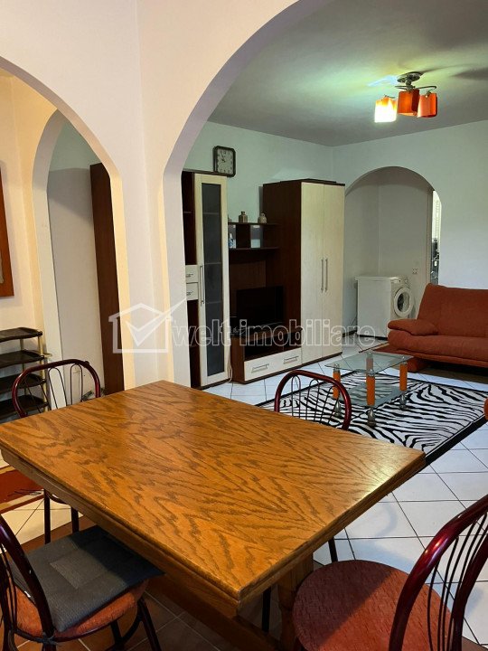 Apartament 2 camere, pe Unirii in Gheorgheni Cluj-Napoca, Gheorgheni 2 camere • 50 m2 • 1 baie • etaj parter/4 • semidecomandatfinisat • mobilat complet pret chirie 500 €/luna + 7 + 4 Inchiriat Caracteristici Tip locuinta Apartament Tip imobil bloc de apartamente Numar camere 2 Numar bucatarii 1 Numar bai 1 Parcare nu Supr. construita 62 m2 Suprafata utila 50 m2 Compartimentare Semidecomandat Confort 1 Etaj parter/4 Construit cu Caramida An constructie 1980 Disponibilitate imediat Descrierea Apartamentului Welt Imobiliare va propune pentru inchiriere un apartament cu 2 camere , 50mp, bine amenajat pe Unirii in cartierul Gheorgheni. Apartamentul este la 7 min pe jos de Iulius Mall, Lidl, Kaufland, la 10 min de Complexul Sportiv Gheorgheni si la 12 min pe jos de FSEGA. Compartimentat dupa cum urmeaza: - holuri transformate in spatii deschise cu livingul si bucataria: la intrare cu cuier, oglinda si spatii depozitare papuci, langa baie cu masina de spalat haine, uscator si masa de calcat - bucatarie open space cu aragaz, cuptor electric, frigider, congelator, masa si scaune, spatii depozitare, etc - living cu 2 canapele, TV, mobila de living, birou, etc - dormitor cu pat matrimonial, noptiere, sifonier ID Proprietate - P24203 Utilitati, Finisaje Utilitati generale: Electricitate, Apa, Gaz, CanalizareSistem de incalzire Centrala termica, Calorifere Finisaje: Izolatii termice (Exterior), Pereti (Vopsea lavabila, Faianta), Podele (Parchet, Gresie), Ferestre cu geam termopan (PVC), Jaluzele (Verticale), Usa intrare (Metal) Dotari: Bucatarie (Mobilata, Utilata), Contorizare (Apometre, Contor gaz), Mobilat (Complet), Dotari imobil (Interfon), Electrocasnice (Masina de spalat rufe, Frigider, Aragaz, TV) Vecinatati si puncte de interes in zona Iulius Mall, FSEGA, baza sportiva Gheorgheni, Kaufland, Lidl Amenajare strazi (Asfaltate), Iluminat stradal, Mijloace de transport in comun Numar vizualizari: 1260