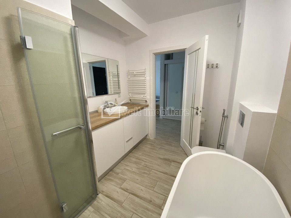 Apartament 2 camere, modern, parcare subterana, imobil nou aproape de Centru Cluj-Napoca, Gheorgheni 2 camere • 52 m2 • 1 baie • etaj 5/6 • semidecomandatfinisat • mobilat lux pret chirie negociabil 690 €/luna 680 €/luna + 25 + 22 Inchiriat Exclusivitate Caracteristici Tip locuinta Apartament Tip imobil bloc de apartamente Numar camere 2 Numar bucatarii 1 Numar bai 1 Numar terase 1 Parcare da Supr. construita 64 m2 Suprafata utila 52 m2 Compartimentare Semidecomandat Confort Marit Etaj 5/6 Construit cu Caramida An constructie 2020 Disponibilitate 1 septembrie Descrierea Apartamentului Oferim spre inchiriere apartament 2 camere, semidecomandat, lux, intr-un complex rezidential nou, zona Brancusi. Apartamentul este la 10 minute de mers pe jos de Piata Cipariu. Se gasesc aproape restaurante, magazine, banci, scoala, piata agroalimentara. Este compartimentat astfel: - hol intrare cu dressing mare cu oglinda si usi glisante pentru haine, incaltaminte, accesorii - living deschis cu mobilier depozitare, smart TV, coltar extensibil, mic fotoliu, masuta; centrala termica - bucatarie cu masina de spalat vase, frigider cu congelator, cuptor electric, plita electrica, cuptor cu microunde, hota etc. - baie cu cada si dus, masina de spalat haine, alte spatii depozitare - dormitor cu pat matrimonial de 180x200, noptiere, dressing imens pe tot peretele, cu usi glisante, smart TV - terasa spatioasa (aprox 10 mp) cu priveliste panoramica. In pretul chiriei este inclus si un loc de parcare in subteranul imobilului. ID Proprietate - P29059 Utilitati, Finisaje Utilitati generale: Electricitate, Apa, Gaz, Canalizare, Cablu TVSistem de incalzire Centrala termica, Incalzire in pardoseala Finisaje: Izolatii termice (Exterior), Pereti (Vopsea lavabila, Faianta), Podele (Parchet, Gresie), Ferestre cu geam termopan (PVC), Usa intrare (Metal), Usi interior (Celulare) Dotari: Alte spatii utile (Terasa), Bucatarie (Mobilata, Utilata), Contorizare (Apometre, Contor gaz), Mobilat (Lux), Dotari imobil (Videointerfon, Lift, Curte comuna), Electrocasnice (Masina de spalat rufe, Frigider, Aragaz, Masina de spalat vase, TV, Cuptor microunde, Hota) Vecinatati si puncte de interes in zona Brancusi Amenajare strazi (Asfaltate), Iluminat stradal, Mijloace de transport in comun Numar vizualizari: 719