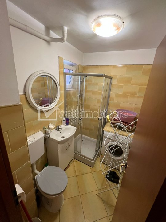 Apartament de inchiriat, 2 camere, Cartierul Gheorgheni Cluj-Napoca, Gheorgheni 2 camere • 45 m2 • 1 baie • etaj 2/5 • semidecomandatfinisat • mobilat complet pret chirie negociabil 400 €/luna + 12 + 9 Caracteristici Tip locuinta Apartament Tip imobil bloc de apartamente Numar camere 2 Numar bucatarii 1 Numar bai 1 Numar balcoane 1 Parcare nu Supr. construita 54 m2 Suprafata utila 45 m2 Compartimentare Semidecomandat Confort 2 Etaj 2/5 Disponibilitate 15 septembrie Descrierea Apartamentului Se ofera spre inchiriere apartament cu 2 camere situat in cartierul Gheorgheni, pe strada Busteni, intr-o zona linistita si verde, aproape de mijloace de transport in comun, magazine si alte facilitati. Apartamentul are o suprafata utila de 45 mp si este compartimentat astfel: - dormitor separat - living spatios - bucatarie inchisa, complet mobilata si utilata - baie - balcon - hol Locuinta este situata la etajul 2 al unui imobil cu 5 niveluri, fiind complet mobilata si utilata, ideal pentru o persoana sau un cuplu. Nu se accepta animale de companie. Avantaje: - zona linistita din Gheorgheni - acces facil la mijloace de transport in comun - apartament luminos, complet utilat - bloc curat si bine intretinut Pentru mai multe informatii sau programarea unei vizionari, va rugam sa ne contactati. ID Proprietate - P49656 Utilitati, Finisaje Utilitati generale: Electricitate, Apa, Gaz, CanalizareSistem de incalzire Termoficare, Calorifere Finisaje: Izolatii termice (Bloc izolat termic), Pereti (Vopsea lavabila, Faianta), Podele (Parchet, Gresie), Ferestre cu geam termopan (PVC) Dotari: Bucatarie (Mobilata, Utilata), Contorizare (Apometre, Contor gaz), Mobilat (Complet), Dotari imobil (Interfon, Spatii agrement), Electrocasnice (Masina de spalat rufe, Frigider, Aragaz, TV) Vecinatati si puncte de interes in zona Amenajare strazi (Asfaltate), Iluminat stradal, Mijloace de transport in comun Numar vizualizari: 834