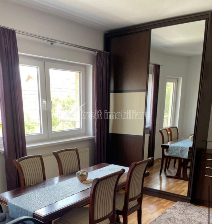 Apartament 3 camere, cartierul Gheorgheni Cluj-Napoca, Gheorgheni 2 camere • 80 m2 • 1 baie • etaj 1/1 • decomandatfinisat • mobilat complet pret chirie 700 €/luna + 4 Caracteristici Tip locuinta Apartament Tip imobil casa/vila Numar camere 2 Numar bucatarii 1 Numar bai 1 Parcare nu Supr. construita 96 m2 Suprafata utila 80 m2 Compartimentare Decomandat Confort 1 Etaj 1/1 Construit cu Beton An constructie 2000 Disponibilitate imediat Descrierea Apartamentului Vă oferim spre închiriere un apartament modern cu 3 camere, situat în cartierul Gheorgheni, la etajul 1 al unei case. Apartamentul are o suprafață de 80 mp și este decomandat, ideal pentru o familie aflată în căutarea unui spațiu confortabil și primitor. Compartimentarea este următoarea: cameră de zi open space cu bucătărie, 2 dormitoare și baie. Apartamentul este mobilat și utilat, iar livingul este deosebit de spațios. Acest apartament se remarcă prin două aspecte: spațiul amplu de depozitare și suprafața generoasă. Locația este excelentă, cu acces rapid la mijloace de transport în comun, magazine, parcuri și alte facilități. Pentru mai multe detalii sau pentru a programa o vizionare, vă rugăm să ne contactați. ID Proprietate - P52219 Utilitati, Finisaje Utilitati generale: Electricitate, Apa, Gaz, CanalizareSistem de incalzire Centrala termica, Calorifere Finisaje: Izolatii termice (Exterior), Pereti (Vopsea lavabila, Faianta), Podele (Parchet, Gresie), Ferestre cu geam termopan (PVC), Usa intrare (Metal), Usi interior (Lemn) Dotari: Bucatarie (Mobilata, Utilata), Contorizare (Apometre), Mobilat (Complet), Dotari imobil (Interfon), Electrocasnice (Masina de spalat rufe, Frigider, Aragaz, Hota) Vecinatati si puncte de interes in zona FSEGA Amenajare strazi (Asfaltate), Iluminat stradal Numar vizualizari: 95