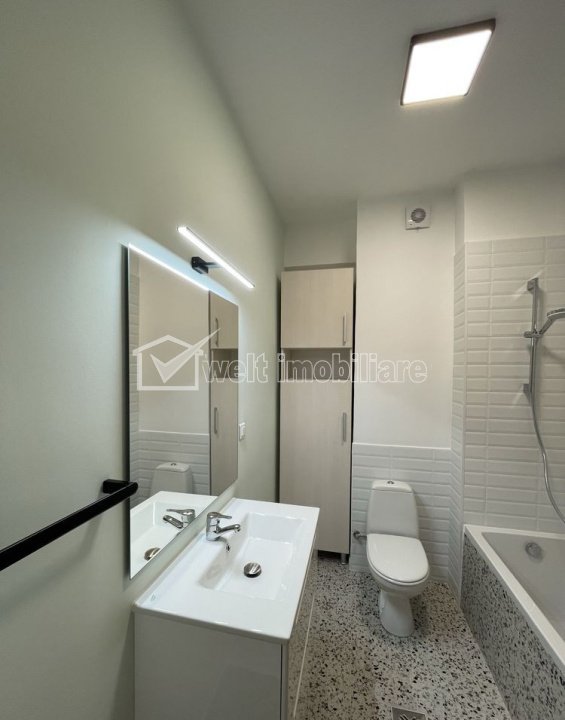 + 6 + 3 Caracteristici Tip locuinta Apartament Tip imobil bloc de apartamente Numar camere 2 Numar bucatarii 1 Numar bai 1 Numar balcoane 1 Parcare da Supr. construita 50 m2 Suprafata utila 40 m2 Compartimentare Semidecomandat Confort 1 Etaj 8/11 Construit cu Caramida An constructie 2015 Disponibilitate imediat Descrierea Apartamentului Welt Imobiliare va propune spre inchiriere un apartament situat in zona Iulius Mall, cartierul Gheorgheni. Desfasurat pe o suprafata utila de cca 40 mp, este compartimentat in living plus bucatarie open space, dormitor, baie si un balcon generos de peste 8 mp, dispus pe toata latimea apartamentului. Apartamentul beneficiaza de geamuri termopan/tamplarie PVC si incalzire centrala pe imobil, automatizata prin termostat propriu apartamentului. Fiind situat intr-un ansamblu imobiliar, supravegheat video, beneficiaza de acces restrictionat pe baza de cartela, bariera access auto si paza contractata 24/7. Apartamentul se inchiriaza ultrafinisat, mobilat complet (bucatarie, living, dormitor) si utilat la cheie (inclusiv electrocasnice de baza plita/cuptor/hota, frigider, cuptor microunde, masina de spalat haine, TV HD in living). In afara spatiului util mentionat apartamentul beneficiaza si de o parcare subterana, Apartamentul este disponibil imediat. Pentru alte detalii au pentru ptogramarea unei vizionari va rugam sa ne contactati. ID Proprietate - P52556 Utilitati, Finisaje Utilitati generale: Electricitate, Apa, Gaz, Canalizare, Cablu TVSistem de incalzire Centrala de imobil, CalorifereClimatizare Aer conditionat Finisaje: Izolatii termice (Exterior), Pereti (Vopsea lavabila, Faianta), Podele (Parchet, Gresie), Ferestre cu geam termopan (PVC), Usa intrare (Metal), Usi interior (Lemn) Dotari: Bucatarie (Mobilata, Utilata), Contorizare (Apometre, Contor caldura), Mobilat (Complet), Dotari imobil (Interfon, Lift), Electrocasnice (Masina de spalat rufe, Frigider, Aragaz) Vecinatati si puncte de interes in zona Amenajare strazi (Asfaltate), Iluminat stradal, Mijloace de transport in comun Numar vizualizari: 51