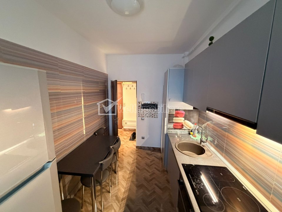 + 11 + 8 Caracteristici Tip locuinta Apartament Tip imobil bloc de apartamente Numar camere 2 Numar bucatarii 1 Numar bai 1 Numar balcoane 1 Parcare da Supr. construita 54 m2 Suprafata utila 45 m2 Compartimentare Decomandat Confort 1 Etaj 7/10 An constructie 2013 Disponibilitate imediat Descrierea Apartamentului Welt Imobiliare oferă spre închiriere pe termen lung apartament cu 2 camere, decomandat, situat pe strada Alverna, cartier Gheorgheni. - 45 mp | dormitor separat | living cu balcon | bucătărie separată, inchisa | baie. Complet mobilat și utilat: mașină de spălat vase, plită inducție, hotă, frigider, microunde, mașină de spălat rufe, uscător, aer condiționat, centrală termică proprie. Zonă verde, parcuri, magazine și stații de autobuz în apropiere. Chirie: 550 euro/lună Garantie: 550 euro Se caută închiriere pe termen lung Nu este pet friendly Fumatul permis doar pe balcon Disponibil imediat. ID Proprietate - P52781 Utilitati, Finisaje Utilitati generale: Electricitate, Apa, Gaz, CanalizareSistem de incalzire Centrala termica, CalorifereClimatizare Aer conditionat Finisaje: Izolatii termice (Bloc izolat termic), Pereti (Vopsea lavabila), Podele (Parchet, Gresie), Usa intrare (Metal), Usi interior (Lemn) Dotari: Bucatarie (Mobilata, Utilata), Contorizare (Apometre, Contor caldura, Contor gaz), Mobilat (Complet), Dotari imobil (Interfon, Lift), Electrocasnice (Masina de spalat rufe, Frigider, Hota) Vecinatati si puncte de interes in zona Amenajare strazi (Asfaltate), Iluminat stradal, Mijloace de transport in comun Numar vizualizari: 153