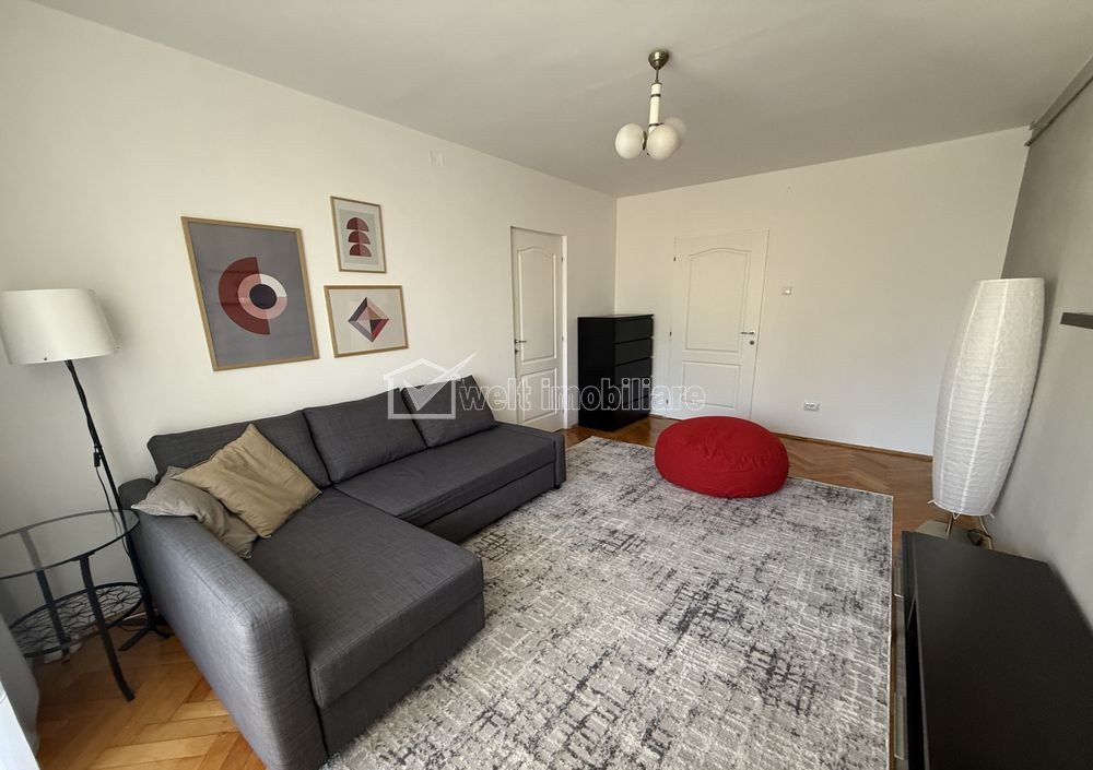 Inchiriere apartament 2 camere decomandate Gheorgheni, zona Mercur Cluj-Napoca, Gheorgheni 2 camere • 53 m2 • 1 baie • etaj 4/4 • decomandatfinisat pret chirie 560 €/luna + 7 + 4 Caracteristici Tip locuinta Apartament Tip imobil bloc de apartamente Numar camere 2 Numar bucatarii 1 Numar bai 1 Numar balcoane 1 Parcare da Supr. construita 65 m2 Suprafata utila 53 m2 Compartimentare Decomandat Confort 1 Etaj 4/4 Construit cu Caramida Disponibilitate imediat Descrierea Apartamentului Welt Imobiliare va ofera spre inchiriere un apartament cu 2 camere decomandate, situat la etajul 4, blocul avand acoperis de tigla. Apartamentul este foarte curat, dotat cu centrala termica, masina spalat rufe, combina frigorifica. Are vedere spre parc, inconjurat de spatiu verde. Dispune de parcare in fata blocului. Locatia este strada Unirii, langa complex Mercur, foarte aproape de Iulius Mall si baza sportiva cat si de statia de transport in comun. Pentru programarea unei vizionari nu ezitati sa ne contactati! ID Proprietate - P53870 Utilitati, Finisaje Utilitati generale: Electricitate, Apa, Gaz, Canalizare, Cablu TVSistem de incalzire Centrala termica, Calorifere Finisaje: Pereti (Vopsea lavabila, Faianta), Podele (Parchet, Gresie), Ferestre cu geam termopan (PVC), Usa intrare (Metal), Usi interior (Lemn) Dotari: Bucatarie (Mobilata), Contorizare (Apometre, Contor gaz), Dotari imobil (Interfon), Electrocasnice (Masina de spalat rufe, Frigider, Aragaz, Cuptor microunde) Vecinatati si puncte de interes in zona Amenajare strazi (Asfaltate), Iluminat stradal, Mijloace de transport in comun Numar vizualizari: 38