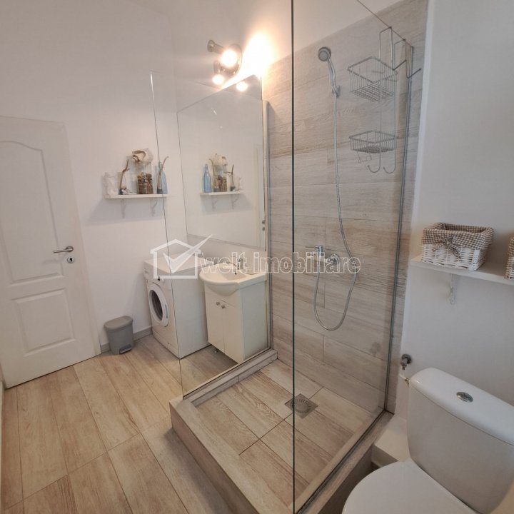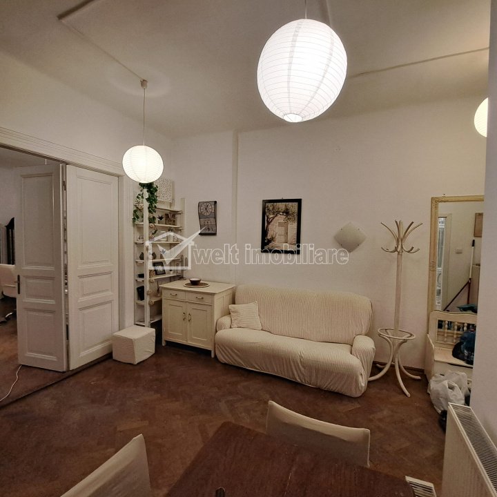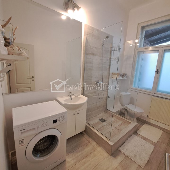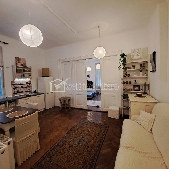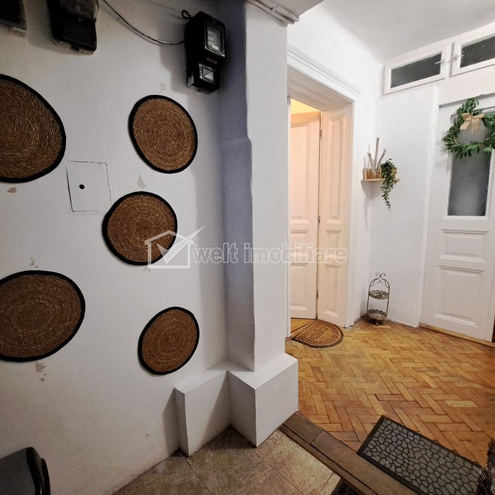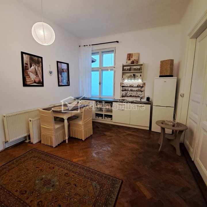 2 camere, vila interbelica, parcul central, curte, renovat Cluj-Napoca, Grigorescu 2 camere • 50 m2 • 1 baie • etaj 1/1 • decomandatfinisat • mobilat complet pret chirie 680 €/luna + 9 + 6 Caracteristici Tip locuinta Apartament Tip imobil casa/vila Numar camere 2 Numar bucatarii 1 Numar bai 1 Numar terase 1 Parcare nu Supr. construita 60 m2 Suprafata utila 50 m2 Compartimentare Decomandat Etaj 1/1 An constructie 1970 Disponibilitate imediat Descrierea Apartamentului Welt Imobiliare va propune spre inchiriere un apartament cu 2 camere semidecomandate, situat intr-o vila interbelica din zona parcului central. Locuinta este amplasata la etajul 1, avand suprafata utila de aproximativ 50mp. Compartimentarea este eficient gandita si cuprinde: - 1 living tip open space cu bucatarie, loc de luat masa si canapea - 1 dormitor cu pat matrimonial si birou - 1 baie, cu cada de dus si geam In plus, apartamentul este proaspat renovat, in stil vintage, situat intr-o cladire interbelica langa Parcul Central, cu gradina dotata cu masa, scaune de picnic si grill. Contactati-ne pentru mai multe informatii sau pentru a programa o vizionare! ID Proprietate - P52203 Utilitati, Finisaje Utilitati generale: Electricitate, Gaz, CanalizareSistem de incalzire Calorifere Finisaje: Pereti (Vopsea lavabila, Faianta), Podele (Parchet, Gresie), Usa intrare (Metal), Usi interior (Lemn) Dotari: Bucatarie (Mobilata, Utilata), Mobilat (Complet) Vecinatati si puncte de interes in zona Amenajare strazi (Asfaltate), Iluminat stradal, Mijloace de transport in comun Numar vizualizari: 68