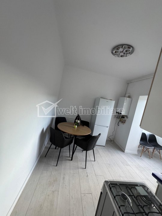 + 9 + 6 Inchiriat Caracteristici Tip locuinta Apartament Tip imobil bloc de apartamente Numar camere 2 Numar bucatarii 1 Numar bai 1 Numar balcoane 1 Parcare nu Supr. construita 80 m2 Suprafata utila 64 m2 Compartimentare Decomandat Confort Marit Etaj 2/3 Construit cu Caramida An constructie 1970 Disponibilitate imediat Descrierea Apartamentului Oferim spre inchiriere un apartament cu 2 camere, situat intr-o zona semicentrala, foarte bine conectata la reteaua de transport in comun. Cea mai apropiata statie se afla la doar 2 minute de mers pe jos. Apartamentul are o suprafata utila de 64 de metri patrati si este compartimentat decomandat. Se afla la etajul 2 al unui imobil cu 3 etaje. Locuinta este foarte bine intretinuta si a fost renovata complet in anul 2025. Apartamentul este partial mobilat, iar proprietarul este dispus sa il mobileze complet, in functie de nevoile viitorului chirias. In interior se afla un dressing spatios, ideal pentru depozitare. De asemenea, locuinta dispune de centrala termica proprie, care asigura confort termic pe tot parcursul anului. Pe langa spatiul interior generos, apartamentul ofera si o boxa de 16 metri patrati la subsol, perfecta pentru depozitare suplimentara. Totodata, chiriasul va avea acces la o gradina cu intrare pietonala, un beneficiu rar in aceasta zona. Locuinta se afla intr-o zona centrala, in imediata apropiere a magazinelor, farmaciilor, cafenelelor si a altor facilitati utile. Pentru mai multe informatii sau pentru a programa o vizionare, va rugam sa ne contactati. ID Proprietate - P47850 Utilitati, Finisaje Utilitati generale: Electricitate, Apa, Gaz, Canalizare, Cablu TVSistem de incalzire Centrala termica, Calorifere Finisaje: Izolatii termice (Bloc izolat termic), Pereti (Vopsea lavabila, Faianta), Podele (Parchet, Gresie), Usa intrare (Lemn) Dotari: Alte spatii utile (Boxa la subsol), Bucatarie (Mobilata), Contorizare (Apometre, Contor gaz), Mobilat (Complet), Dotari imobil (Interfon, Gradina), Electrocasnice (Masina de spalat rufe, Frigider, Aragaz, TV, Cuptor microunde, Hota) Vecinatati si puncte de interes in zona Amenajare strazi (Asfaltate), Iluminat stradal, Mijloace de transport in comun Numar vizualizari: 795
