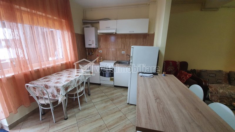 Apartament cu 2 camere, finisat si mobilat modern, Floresti, Stadionului Floresti 2 camere • 54 m2 • 1 baie • etaj 2/3 • semidecomandatfinisat • mobilat complet pret chirie negociabil 300 €/luna + 8 + 5 Inchiriat Caracteristici Tip locuinta Apartament Tip imobil bloc de apartamente Numar camere 2 Numar bucatarii 1 Numar bai 1 Numar balcoane 1 Parcare da Supr. construita 64 m2 Suprafata utila 54 m2 Compartimentare Semidecomandat Confort 1 Etaj 2/3 Construit cu Caramida An constructie 2016 Disponibilitate Imediat Descrierea Apartamentului Welt Imobiliare ofera spre inchiriere apartament cu doua camere semidecomandat, in zona Stadionului Floresti, in apropierea mijloacelor de transport in comun si a facilitatilor si la 4 km distanta de complexul Vivo. Apartamentul este situat la etajul 2 intr-un imobil finalizat in anul 2016, izolat termic pe exterior (clasa B energetic), securizat cu interfon si face parte dintr-un complex supravegheat video. Este compus din living cu bucatarie, dormitor, baie, balcon si o debara incapatoare si are o suprafata utila de 54 mp. Se inchiriaza complet mobilat si utilat cu tot necesarul si beneficiaza de un loc de parcare cu CF propriu. Garantia este echivalentul unei chirii. Nu se accepta animale de companie. Pentru mai multe detalii si programare vizionari, nu ezitati sa ne contactati. ID-P25234 ID Proprietate - P25234 Utilitati, Finisaje Utilitati generale: Electricitate, Apa, Gaz, CanalizareSistem de incalzire Centrala termica, Calorifere Finisaje: Izolatii termice (Exterior, Bloc izolat termic), Pereti (Vopsea lavabila, Faianta), Podele (Parchet, Gresie), Ferestre cu geam termopan (PVC), Usa intrare (Metal) Dotari: Bucatarie (Mobilata, Utilata), Contorizare (Apometre, Contor gaz), Mobilat (Complet), Dotari imobil (Interfon, Acoperis), Electrocasnice (Masina de spalat rufe, Frigider, Aragaz) Vecinatati si puncte de interes in zona Stadion Floresti, Profi Somesului Amenajare strazi (Asfaltate), Iluminat stradal, Mijloace de transport in comun Numar vizualizari: 1784
