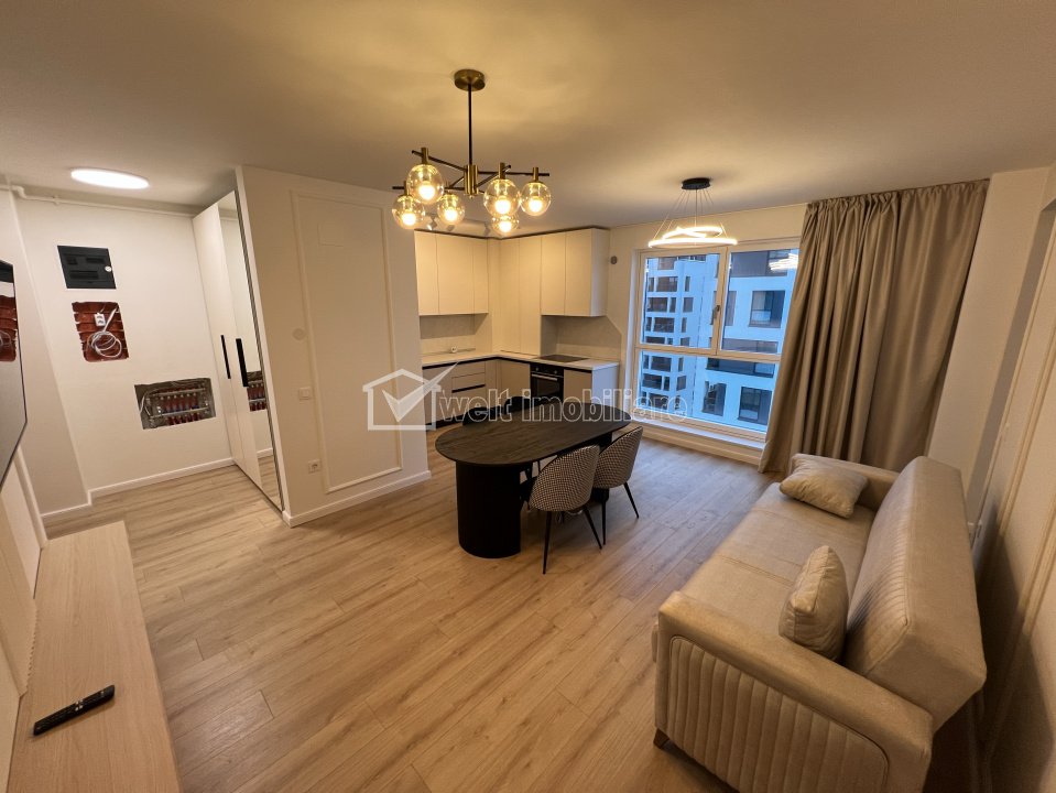 Apartament premium de inchiriat, 2 camere, Columna Residence - VIVO Floresti, zona Vivo (Polus Center) 2 camere • 60 m2 • 1 baie • etaj 6/8 • semidecomandatmobilat lux pret chirie 650 €/luna + 12 + 9 Caracteristici Tip locuinta Apartament Tip imobil bloc de apartamente Numar camere 2 Numar bucatarii 1 Numar bai 1 Numar balcoane 1 Parcare da Supr. construita 77 m2 Suprafata utila 60 m2 Compartimentare Semidecomandat Confort Marit Etaj 6/8 An constructie 2024 Disponibilitate imediat Descrierea Apartamentului Welt Imobiliare va propune spre inchiriere un apartament de lux cu 2 camere, situat in complexul rezidential Columna Residence, la etajul 5 al unui imobil nou cu regim de inaltime P+8E. Locuinta este semidecomandata si inteligent compartimentata, fiind compusa din: - Living open-space cu bucatarie - Dormitor cu dressing generos - Hol - Baie moderna - Balcon Apartamentul este mobilat modern, cu piese de calitate, si finisat la standarde premium, oferind un ambient elegant si confortabil. Dotari si beneficii: - Imobil nou construit, la standarde moderne ridicate - Sistem de aer conditionat multisplit, pentru confort termic in fiecare incapere - Centrala termica proprie cu incalzire prin pardoseala - Usa antiefractie - Masina de spalat vase si rufe, hote, combina frigorifica, cuptor electric Localizarea este un mare avantaj: - Acces facil prin bariera din parcarea complexului comercial VIVO - La doar 1 minut de mers pe jos pana la VIVO Mall - Statii de transport in comun la doar 3 minute - Acces rapid catre oras, la aproximativ 2 minute cu masina In pretul de inchiriere este inclus un loc de parcare. Aceasta proprietate este ideala pentru persoanele care isi doresc un apartament modern, intr-un complex nou, cu acces rapid la facilitati si zone comerciale importante. Pentru detalii suplimentare si programarea unei vizionari, echipa Welt Imobiliare va sta cu placere la dispozitie. ID Proprietate - P52826 Utilitati, Finisaje Utilitati generale: Electricitate, Apa, Gaz, CanalizareSistem de incalzire Centrala termica, Incalzire in pardosealaClimatizare Aer conditionat Finisaje: Izolatii termice (Bloc izolat termic), Pereti (Vopsea lavabila, Faianta), Podele (Parchet, Gresie), Ferestre cu geam termopan (PVC), Usa intrare (Metal) Dotari: Alte spatii utile (Terasa), Bucatarie (Mobilata, Utilata), Contorizare (Apometre, Contor gaz), Mobilat (Lux), Dotari imobil (Interfon, Lift, Spatii agrement), Electrocasnice (Masina de spalat rufe, Frigider, Masina de spalat vase, TV, Hota), Diverse (Senzor de fum, Sistem de alarma, Telecomanda poarta acces auto) Vecinatati si puncte de interes in zona Vivo, Metro, Reprezentanta BMW, Optimus Nova Center, West City Hotel Amenajare strazi (Asfaltate), Iluminat stradal, Mijloace de transport in comun Numar vizualizari: 67