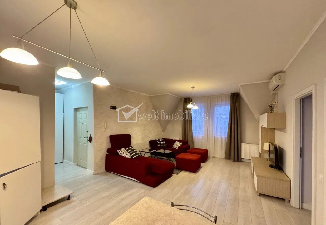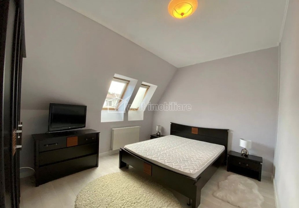 Apartament in vila, zona Andrei Muresanu Cluj-Napoca, Andrei Muresanu 3 camere • 80 m2 • 1 baie • etaj 2/1 • semidecomandatfinisat • mobilat complet pret chirie 750 €/luna + 10 + 7 Caracteristici Tip locuinta Apartament Tip imobil casa/vila Numar camere 3 Numar bucatarii 1 Numar bai 1 Parcare da Supr. construita 90 m2 Suprafata utila 80 m2 Compartimentare Semidecomandat Confort 1 Etaj 2/1 Construit cu Caramida Disponibilitate imediat Descrierea Apartamentului Welt Imobiliare ofera spre inchiriere un apartament cu 3 camere, situat intr-o zona foarte linistita, fiind o zona de case in cartierul Andrei Muresanu. Apartamentul este pozitionat la mansarda imobilului, acesta avand cate un aparatment de pe fiecare nivel, cu intrare separata. Compus din living impreuna cu bucataria, 2 camere - fiecare cu pat matrimonial, baie si hol, apartamentul este foarte bine compartimentat, fiind o alegere excelenta pentru o familie sau persoane ce doresc sa se bucure de avantajele zonei. Fiecare camera beneficiaza aer conditionat. Aparatamentul se ofera complet mobilat si utilat modern, mentionand existenta unei centrale individuale pentru incalzire si a instalatiei de aer conditionat. Dispune de loc propriu de parcare in curte. Pentru mai multe detalii nu ezitati sa ne contactati. ID Proprietate - P52560 Utilitati, Finisaje Utilitati generale: Electricitate, Apa, Gaz, CanalizareSistem de incalzire Centrala termica, CalorifereClimatizare Aer conditionat Finisaje: Izolatii termice (Exterior), Pereti (Vopsea lavabila, Faianta), Podele (Parchet, Gresie), Ferestre cu geam termopan (PVC), Usa intrare (Metal) Dotari: Bucatarie (Mobilata, Utilata), Contorizare (Contor gaz), Mobilat (Complet), Electrocasnice (Masina de spalat rufe, Frigider, Aragaz, TV) Vecinatati si puncte de interes in zona Amenajare strazi (Asfaltate, Betonate) Numar vizualizari: 93