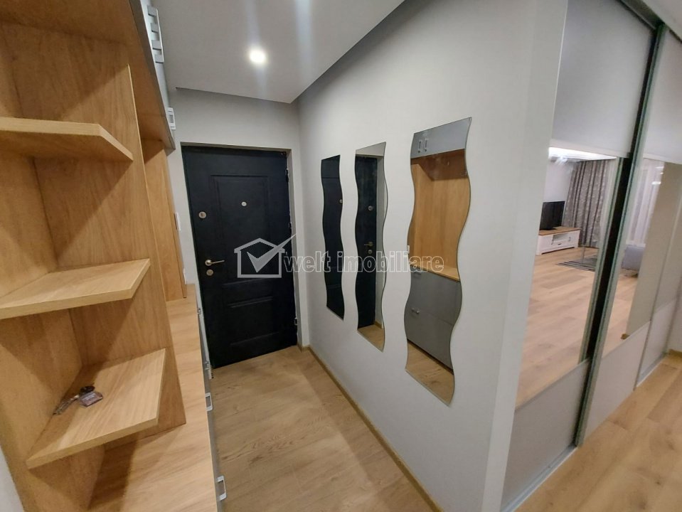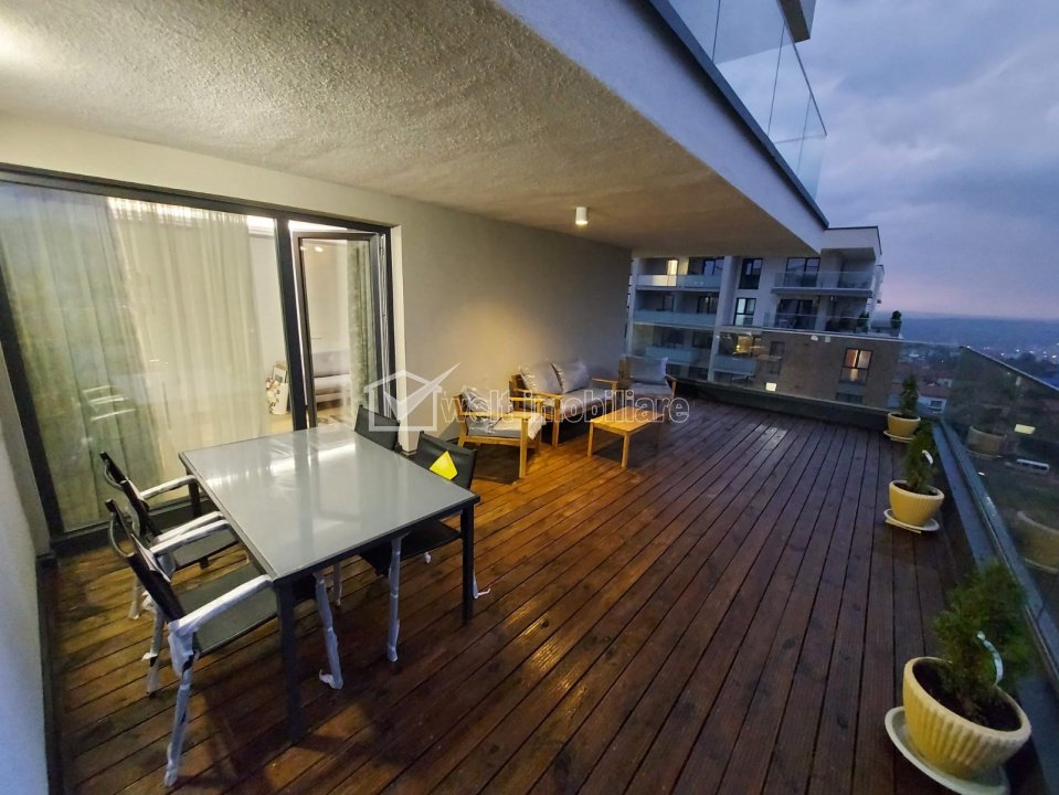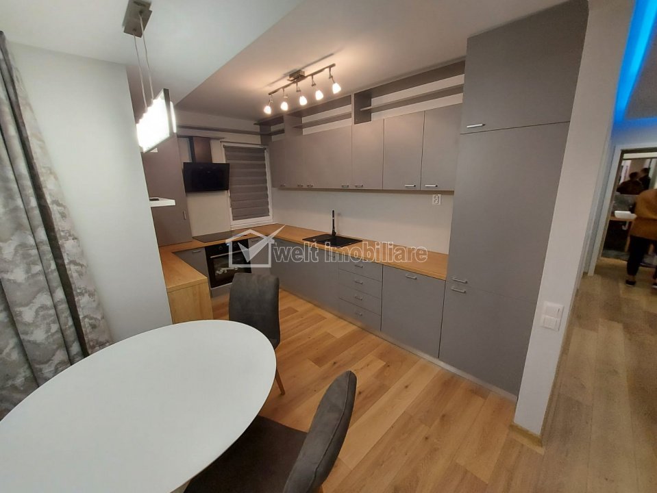 Apratament lux, 3 camere, terasa, parcare, Grand Hill Cluj-Napoca, Buna Ziua 3 camere • 71.9 m2 • 2 bai • etaj 9/10 • semidecomandatmobilat lux pret chirie 1.000 €/luna + 17 + 14 Caracteristici Tip locuinta Apartament Tip imobil bloc de apartamente Numar camere 3 Numar bucatarii 1 Numar bai 2 Numar balcoane 1 Numar terase 1 Parcare da Supr. construita 80 m2 Suprafata utila 71.9 m2 Compartimentare Semidecomandat Confort 1 Etaj 9/10 Construit cu Beton Disponibilitate imediat Descrierea Apartamentului Welt Imobiliare va propune spre inchiriere un apartament cu 3 camere semidecomandat, situat in cartierul Buna ziua, complex Grand Hill. Locuinta este amplasata la etajul 9, etaj retras, al unui imobil nou dispus pe 10 etaje, avand suprafata utila de aproximativ 71 mp, Compartimentarea este eficient gandita si cuprinde: - 1 living tip open-space cu bucatarie si loc de luat masa - 2 dormitoare - 2 bai; - hol; -terasa de 43 mp; Apartamentul se inchireaza complet mobilat si utilat lux. Beneficiaza de loc parcare subteran. Este disponibil cu data de 15 Martie. Contactati-ne pentru mai multe informatii sau pentru a programa o vizionare! ID Proprietate - P53018 Utilitati, Finisaje Utilitati generale: Electricitate, Apa, Gaz, CanalizareSistem de incalzire Centrala termica, Incalzire in pardosealaClimatizare Aer conditionat Finisaje: Izolatii termice (Exterior), Pereti (Vopsea lavabila, Var), Podele (Parchet, Gresie), Ferestre cu geam termopan (PVC), Jaluzele (Verticale), Usa intrare (Metal) Dotari: Alte spatii utile (Terasa), Bucatarie (Mobilata, Utilata), Contorizare (Contor gaz), Mobilat (Lux), Dotari imobil (Videointerfon, Lift), Electrocasnice (Masina de spalat rufe, Frigider, Masina de spalat vase, Hota) Vecinatati si puncte de interes in zona Amenajare strazi (Asfaltate, Betonate) Numar vizualizari: 41