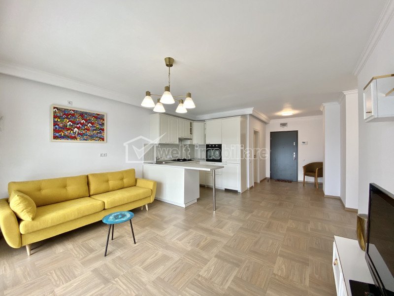 Caracteristici Tip locuinta Apartament Tip imobil bloc de apartamente Numar camere 3 Numar bucatarii 1 Numar bai 2 Numar balcoane 1 Numar garaje 1 Parcare nu Supr. construita 86 m2 Suprafata utila 75 m2 Compartimentare Semidecomandat Confort Marit Etaj 7/7 Construit cu Caramida An constructie 2019 Disponibilitate imediat Descrierea Apartamentului Welt Imobiliare propune spre inchiriere apartament cu 3 camere, situat intr-un imobil recent finalizat, in zona centrala a orasului, strada Somesului. Apartamentul face parte dintr-un ansamblu deosebit, unde se beneficiaza de o curte comuna foarte frumos amenajata, cu spatii verzi si zone recreative, iar la parterul imobilului exista un supermarket Mega Image, salon de cosmetica, sala de fitness etc. Apartamentul se afla pozitionat la etajul 7 al imobilului si este compartimentat in living open space cu bucataria, 2 dormitoare, 2 bai si balcon. Beneficiaza de incalzire in pardoseala si se ofera complet mobilat si utilat modern. In pretul chiriei se ofera 1 loc de parcare in subteran si o boxa individuala pentru depozitare. ID Proprietate - P24010 Utilitati, Finisaje Utilitati generale: Electricitate, Apa, Gaz, CanalizareSistem de incalzire Centrala termica, Incalzire in pardosealaClimatizare Aer conditionat Finisaje: Izolatii termice (Bloc izolat termic), Pereti (Vopsea lavabila, Faianta), Podele (Parchet, Gresie), Ferestre cu geam termopan (PVC), Usa intrare (Metal) Dotari: Alte spatii utile (Boxa la subsol), Bucatarie (Mobilata, Utilata), Contorizare (Apometre, Contor gaz), Mobilat (Complet), Dotari imobil (Videointerfon, Lift, Spatii agrement, Curte comuna) Vecinatati si puncte de interes in zona Ntt Data Amenajare strazi (Asfaltate), Iluminat stradal, Mijloace de transport in comun Numar vizualizari: 1940