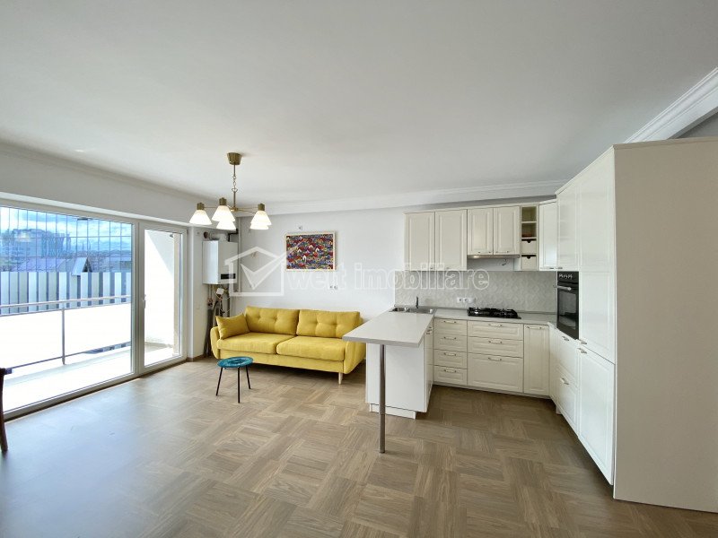 + 15 + 12 Inchiriat Caracteristici Tip locuinta Apartament Tip imobil bloc de apartamente Numar camere 3 Numar bucatarii 1 Numar bai 2 Numar balcoane 1 Numar garaje 1 Parcare nu Supr. construita 86 m2 Suprafata utila 75 m2 Compartimentare Semidecomandat Confort Marit Etaj 7/7 Construit cu Caramida An constructie 2019 Disponibilitate imediat Descrierea Apartamentului Welt Imobiliare propune spre inchiriere apartament cu 3 camere, situat intr-un imobil recent finalizat, in zona centrala a orasului, strada Somesului. Apartamentul face parte dintr-un ansamblu deosebit, unde se beneficiaza de o curte comuna foarte frumos amenajata, cu spatii verzi si zone recreative, iar la parterul imobilului exista un supermarket Mega Image, salon de cosmetica, sala de fitness etc. Apartamentul se afla pozitionat la etajul 7 al imobilului si este compartimentat in living open space cu bucataria, 2 dormitoare, 2 bai si balcon. Beneficiaza de incalzire in pardoseala si se ofera complet mobilat si utilat modern. In pretul chiriei se ofera 1 loc de parcare in subteran si o boxa individuala pentru depozitare. ID Proprietate - P24010 Utilitati, Finisaje Utilitati generale: Electricitate, Apa, Gaz, CanalizareSistem de incalzire Centrala termica, Incalzire in pardosealaClimatizare Aer conditionat Finisaje: Izolatii termice (Bloc izolat termic), Pereti (Vopsea lavabila, Faianta), Podele (Parchet, Gresie), Ferestre cu geam termopan (PVC), Usa intrare (Metal) Dotari: Alte spatii utile (Boxa la subsol), Bucatarie (Mobilata, Utilata), Contorizare (Apometre, Contor gaz), Mobilat (Complet), Dotari imobil (Videointerfon, Lift, Spatii agrement, Curte comuna) Vecinatati si puncte de interes in zona Ntt Data Amenajare strazi (Asfaltate), Iluminat stradal, Mijloace de transport in comun Numar vizualizari: 1940