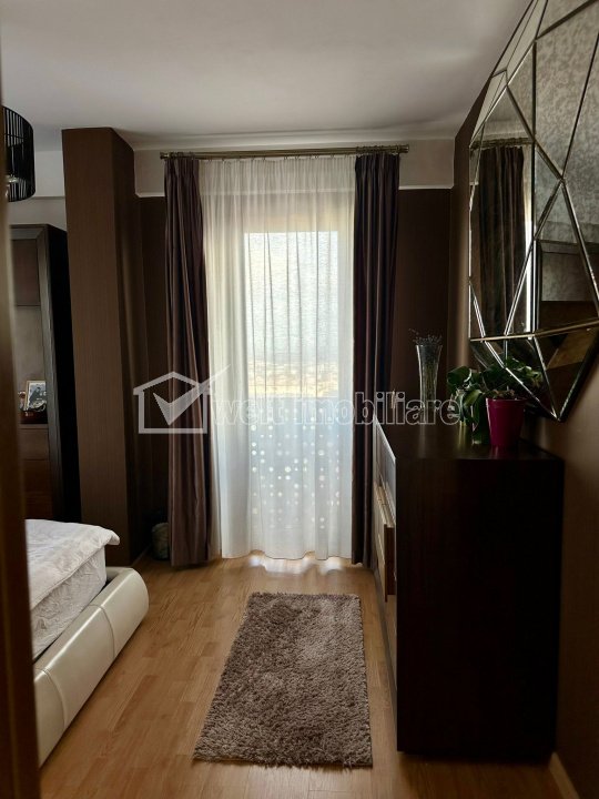 Apartament 3 camere lux, cartier Europa, 2 bai, 3 parcari subterane, 4 balcoane Cluj-Napoca, Europa 3 camere • 90 m2 • 2 bai • etaj 8/8 • semidecomandatfinisat • mobilat complet pret chirie 1.350 €/luna + 14 + 11 Caracteristici Tip locuinta Apartament Tip imobil bloc de apartamente Numar camere 3 Numar bucatarii 1 Numar bai 2 Numar balcoane 4 Parcare da Supr. construita 108 m2 Suprafata utila 90 m2 Compartimentare Semidecomandat Confort Marit Etaj 8/8 An constructie 2012 Disponibilitate imediat Descrierea Apartamentului Welt Imobiliare va propune spre inchiriere un apartament de lux, cu 3 camere, situat in cartierul Europa. Locuinta este situata la etajul 8 din 8, intr-un imobil modern, cu vedere panoramica asupra orasului, avand o suprafata utila de aproximativ 90 mp + 4 balcoane. Compartimentare: - 1 living generos cu zona de relaxare, dining si acces la balcon - 1 dormitor matrimonial cu balcon propriu (va fi dotat cu pat nou mare si saltea noua) - al doilea dormitor, in prezent camera de copii, cu balcon si dressing incastrat (urmeaza sa fie modificat cu pat mare si noptiere, ramane dulapul de haine incastrat in perete) - 1 bucatarie separata, complet utilata (electrocasnice BOSCH si SAMSUNG), cu acces la balcon - 2 bai (una cu cada si masina de spalat rufe, cealalta cu dus si uscator BOSCH) - hol cu multiple spatii de depozitare Dotari suplimentare: - 4 balcoane in total, cu priveliste superba - aer conditionat DAIKIN - centrala termica individuala (mascata, incorporata) - 3 locuri de parcare in garajul subteran (inclusiv cu statie de incarcare electrica) - 3 boxe de depozitare In plus are acces la parculet pentru copii, iar la parterul blocului se afla Mega Image. Apartamentul va fi zugravit si reimprospatat inainte de predare. * Disponibil din 10 noiembrie. ID Proprietate - P50999 Utilitati, Finisaje Utilitati generale: Electricitate, Gaz, CanalizareSistem de incalzire Centrala termica, CalorifereClimatizare Aer conditionat Finisaje: Pereti (Vopsea lavabila, Faianta), Podele (Parchet, Gresie), Usa intrare (Metal), Usi interior (Lemn) Dotari: Alte spatii utile (Boxa la subsol), Bucatarie (Mobilata, Utilata), Mobilat (Complet), Dotari imobil (Interfon, Lift), Electrocasnice (Masina de spalat rufe, Frigider, Aragaz, Masina de spalat vase, TV, Cuptor microunde, Hota) Vecinatati si puncte de interes in zona Amenajare strazi (Asfaltate), Iluminat stradal, Mijloace de transport in comun Numar vizualizari: 478