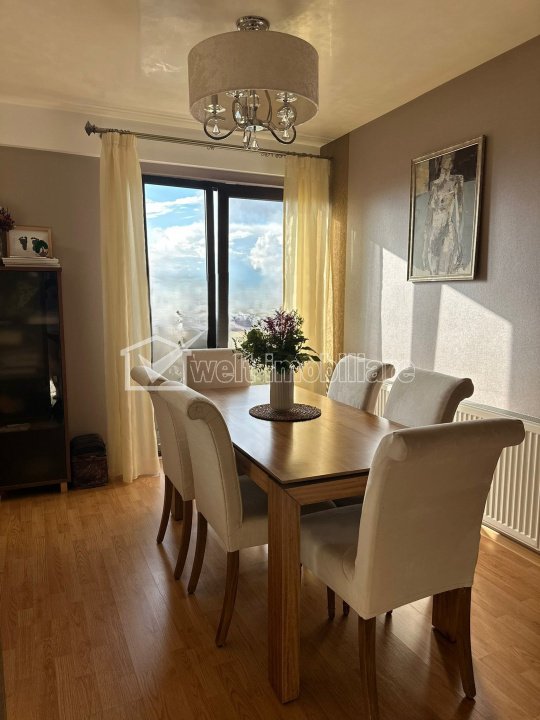 Caracteristici Tip locuinta Apartament Tip imobil bloc de apartamente Numar camere 3 Numar bucatarii 1 Numar bai 2 Numar balcoane 4 Parcare da Supr. construita 108 m2 Suprafata utila 90 m2 Compartimentare Semidecomandat Confort Marit Etaj 8/8 An constructie 2012 Disponibilitate imediat Descrierea Apartamentului Welt Imobiliare va propune spre inchiriere un apartament de lux, cu 3 camere, situat in cartierul Europa. Locuinta este situata la etajul 8 din 8, intr-un imobil modern, cu vedere panoramica asupra orasului, avand o suprafata utila de aproximativ 90 mp + 4 balcoane. Compartimentare: - 1 living generos cu zona de relaxare, dining si acces la balcon - 1 dormitor matrimonial cu balcon propriu (va fi dotat cu pat nou mare si saltea noua) - al doilea dormitor, in prezent camera de copii, cu balcon si dressing incastrat (urmeaza sa fie modificat cu pat mare si noptiere, ramane dulapul de haine incastrat in perete) - 1 bucatarie separata, complet utilata (electrocasnice BOSCH si SAMSUNG), cu acces la balcon - 2 bai (una cu cada si masina de spalat rufe, cealalta cu dus si uscator BOSCH) - hol cu multiple spatii de depozitare Dotari suplimentare: - 4 balcoane in total, cu priveliste superba - aer conditionat DAIKIN - centrala termica individuala (mascata, incorporata) - 3 locuri de parcare in garajul subteran (inclusiv cu statie de incarcare electrica) - 3 boxe de depozitare In plus are acces la parculet pentru copii, iar la parterul blocului se afla Mega Image. Apartamentul va fi zugravit si reimprospatat inainte de predare. * Disponibil din 10 noiembrie. ID Proprietate - P50999 Utilitati, Finisaje Utilitati generale: Electricitate, Gaz, CanalizareSistem de incalzire Centrala termica, CalorifereClimatizare Aer conditionat Finisaje: Pereti (Vopsea lavabila, Faianta), Podele (Parchet, Gresie), Usa intrare (Metal), Usi interior (Lemn) Dotari: Alte spatii utile (Boxa la subsol), Bucatarie (Mobilata, Utilata), Mobilat (Complet), Dotari imobil (Interfon, Lift), Electrocasnice (Masina de spalat rufe, Frigider, Aragaz, Masina de spalat vase, TV, Cuptor microunde, Hota) Vecinatati si puncte de interes in zona Amenajare strazi (Asfaltate), Iluminat stradal, Mijloace de transport in comun Numar vizualizari: 478