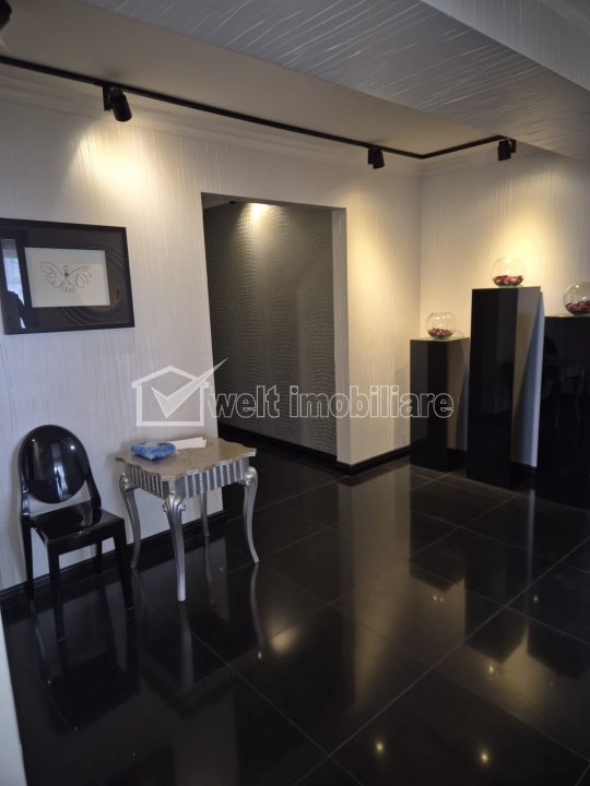Apartament premium, bloc Semiluna Plopilor Cluj-Napoca, Grigorescu 3 camere • 136 m2 • 2 bai • etaj 8/10 • semidecomandatfinisat • mobilat lux pret chirie 1.700 €/luna + 25 + 22 Caracteristici Tip locuinta Apartament Tip imobil bloc de apartamente Numar camere 3 Numar bucatarii 1 Numar bai 2 Numar balcoane 1 Parcare da Supr. construita 140 m2 Suprafata utila 136 m2 Compartimentare Semidecomandat Confort 1 Etaj 8/10 Construit cu Beton Disponibilitate imediat Descrierea Apartamentului Welt Imobiliare va propune spre inchiriere un apartament de lux, cu 3 camere, situat in cartierul Plopilor, bloc Semiluna, lang Winners Sports Club. Locuinta este situata la etajul 8 din 10, intr-un imobil modern, cu vedere panoramica asupra orasului, avand o suprafata utila de aproximativ 136,6 mp + terasa de 68,8 mp Compartimentare: - 1 living generos cu zona de relaxare, dining si acces la balcon; - 1 dormitor matrimonial - al doilea dormitor; - 1 bucatarie separata, complet utilata; - 2 bai; - hol cu multiple spatii de depozitare In pret este inclus un loc de parcare in subteran. Pentru mai multe detalii nu ezitati sa ne contactati. ID Proprietate - P51142 Utilitati, Finisaje Utilitati generale: Electricitate, Apa, Gaz, CanalizareSistem de incalzire Centrala termica, Incalzire in pardosealaClimatizare Aer conditionat Finisaje: Izolatii termice (Exterior), Pereti (Vopsea lavabila), Podele (Parchet, Gresie, Mocheta), Usa intrare (Metal) Dotari: Alte spatii utile (Terasa, Debara), Bucatarie (Mobilata, Utilata), Contorizare (Contor gaz), Mobilat (Lux), Dotari imobil (Videointerfon, Lift), Electrocasnice (Masina de spalat rufe, Frigider, Masina de spalat vase, TV, Hota) Vecinatati si puncte de interes in zona Amenajare strazi (Asfaltate, Betonate) Numar vizualizari: 475