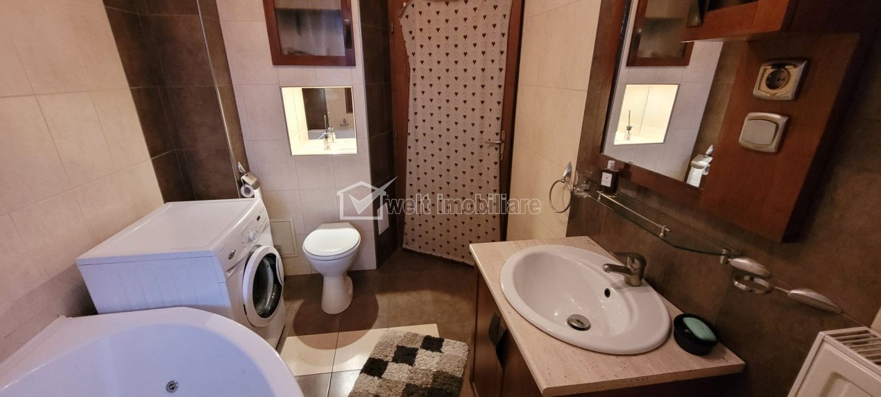 Apartament in vila, 3 camere, 100 mp, terasa, mobilat si utilat modern, Manastur Cluj-Napoca, Manastur 3 camere • 100 m2 • 1 baie • etaj 1/2 • decomandatfinisat • mobilat lux pret chirie negociabil 650 €/luna 550 €/luna + 14 + 11 Inchiriat Exclusivitate Caracteristici Tip locuinta Apartament Tip imobil casa/vila Numar camere 3 Numar bucatarii 1 Numar bai 1 Numar terase 1 Parcare da Supr. construita 120 m2 Suprafata utila 100 m2 Compartimentare Decomandat Confort 1 Etaj 1/2 Construit cu Caramida An constructie 2005 Disponibilitate Imediata Descrierea Apartamentului Welt Imobiliare va ofera in exclusivitate acest apartament spatios de 3 camere, 100 mp, aflat intr-o vila din cartierul Manastur, intr-o zona linistita si in acelasi timp conectata la toate facilitatile (scoli, magazine, banci, mijloace de transport in comun, farmacii etc.). Apartamentul este compus dintr-un living mare, doua dormitoare, baie cu jacuzzi, o bucatarie generoasa si o terasa cu vedere spre spatiul verde. Apartamentul este mobilat modern si se inchiriaza complet utilat (frigider, aragaz, masina de spalat, cuptor cu microunde, centrala termica). Vila este izolata termic, cheltuielile de intretinere sunt mici. Exista si posibilitate de parcare in fata apartamentului. Ideal pentru o familie sau pentru oamenii de afaceri care prefera un apartament luxos, intr-o zona linistita, aproape de toate facilitatile orasului! Pentru mai multe detalii si pentru vizionari, va invit sa ma contactati! ID Proprietate - P9301 Utilitati, Finisaje Utilitati generale: Electricitate, Apa, Gaz, Canalizare, Cablu TVSistem de incalzire Centrala termica, Calorifere Finisaje: Izolatii termice (Bloc izolat termic), Pereti (Vopsea lavabila), Podele (Parchet, Gresie), Ferestre cu geam termopan (PVC), Usa intrare (Metal), Usi interior (Lemn) Dotari: Alte spatii utile (Terasa, Debara), Bucatarie (Mobilata, Utilata), Contorizare (Apometre, Contor gaz), Mobilat (Lux), Dotari imobil (Interfon, Acoperis, Curte comuna), Electrocasnice (Masina de spalat rufe, Frigider, Aragaz, Cuptor microunde, Hota) Vecinatati si puncte de interes in zona Amenajare strazi (Asfaltate), Iluminat stradal, Mijloace de transport in comun Numar vizualizari: 2045