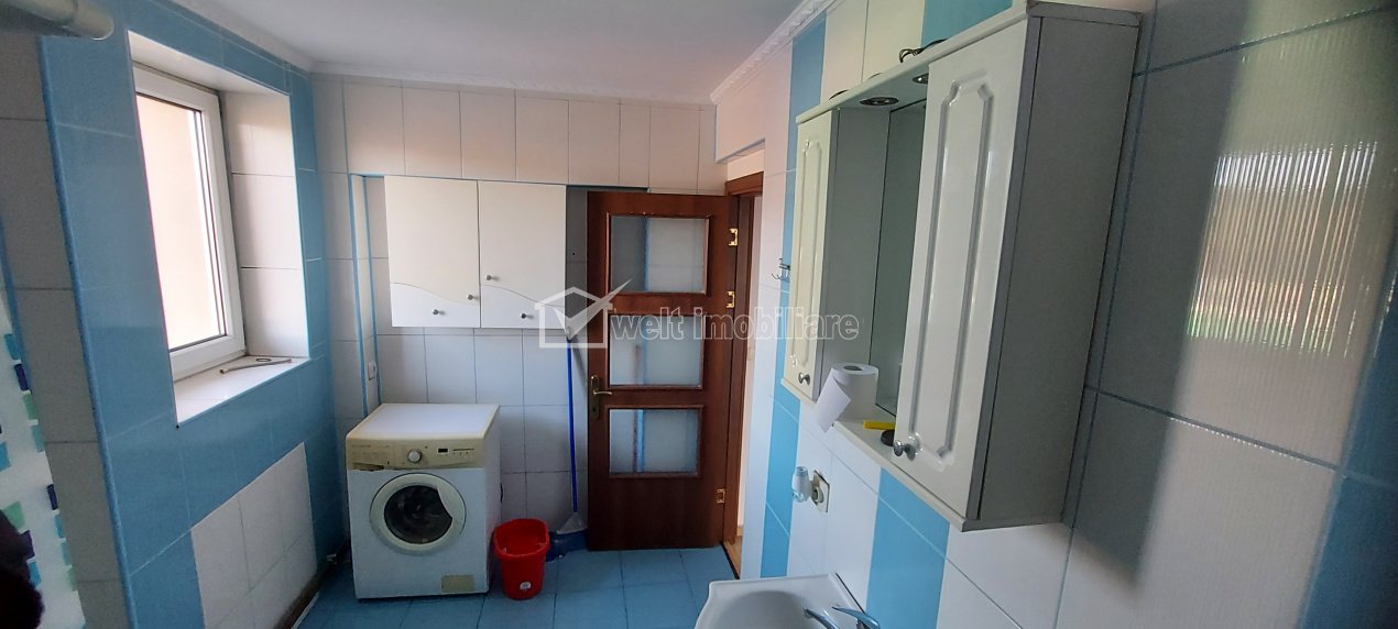 Apartament spatios cu 3 camere, decomandat, 115mp, zona Emerson Cluj-Napoca, Someseni 3 camere • 115 m2 • 1 baie • etaj 1/1 • decomandatfinisat • mobilat complet pret chirie 600 €/luna + 8 + 5 Inchiriat Caracteristici Tip locuinta Apartament Tip imobil bloc de apartamente Numar camere 3 Numar bucatarii 1 Numar bai 1 Numar balcoane 2 Parcare da Supr. construita 148 m2 Suprafata utila 115 m2 Compartimentare Decomandat Confort Marit Etaj 1/1 Construit cu Caramida An constructie 2000 Disponibilitate imediat Descrierea Apartamentului Va propunem spre inchiriere un apartament spatios, cu 3 camere, decomandat, situat in zona Emerson din cartierul Someseni. Cu o suprafata utila generoasa de 115 mp si doua balcoane inchise, care ofera o priveliste deosebita, acest apartament reprezinta o alegere ideala pentru cei care isi doresc confort si functionalitate intr-o zona linistita, dar bine conectata la punctele de interes urban. Locuinta este complet mobilata si utilata, beneficiind de finisaje de inalta calitate si o compartimentare eficienta: trei dormitoare, o bucatarie complet echipata, un hol spatios, o baie generoasa si o debara practica. Incalzirea se realizeaza prin centrala termica electrica, asigurand un nivel ridicat de confort termic pe durata sezonului rece. Locuinta beneficieaza si de un loc de parcare inclus in pretul de inchiriere. Pozitionarea excelenta permite acces rapid catre mijloace de transport in comun, farmacii, magazine si alte facilitati, toate aflate la doar cateva minute distanta. Pentru informatii suplimentare sau pentru a programa o vizionare, va invitam sa ne contactati. ID Proprietate - P48227 Utilitati, Finisaje Utilitati generale: Electricitate, Apa, CanalizareSistem de incalzire Centrala termica, Calorifere Finisaje: Izolatii termice (Bloc izolat termic), Pereti (Vopsea lavabila, Faianta), Podele (Parchet, Gresie), Ferestre cu geam termopan (PVC), Usa intrare (Metal) Dotari: Alte spatii utile (Debara), Bucatarie (Mobilata, Utilata), Contorizare (Apometre, Contor caldura), Mobilat (Complet), Electrocasnice (Masina de spalat rufe, Frigider, Aragaz) Vecinatati si puncte de interes in zona Amenajare strazi (Asfaltate), Iluminat stradal, Mijloace de transport in comun Numar vizualizari: 792