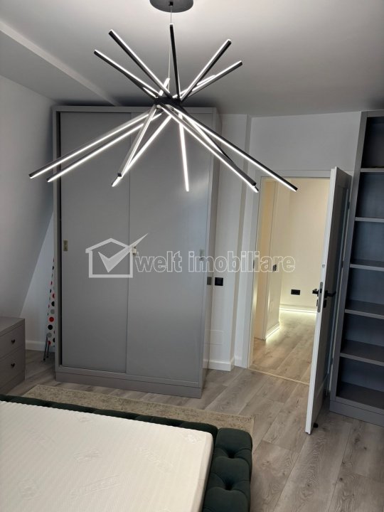 Apartament modern, 3 camere, 2 bai, balcon generos, panorama Cluj-Napoca, Zorilor 3 camere • 73 m2 • 2 bai • etaj 9/14 • semidecomandatfinisat • mobilat complet pret chirie negociabil 899 €/luna 850 €/luna + TVA + 15 + 12 Inchiriat Caracteristici Tip locuinta Apartament Tip imobil bloc de apartamente Numar camere 3 Numar bucatarii 1 Numar bai 2 Numar balcoane 1 Parcare nu Supr. construita 90 m2 Suprafata utila 73 m2 Compartimentare Semidecomandat Confort 1 Etaj 9/14 An constructie 2021 Disponibilitate imediat Descrierea Apartamentului Welt Imobiliare va propune spre inchiriere un apartament de exceptie situat in cel mai spectaculos complex rezidential din Cluj-Napoca. Suprafata utila a apartamentului este de 73 mp, oferind un spatiu amplu pentru o locuire confortabila. Balconul este generos, avand 15 mp, ideal pentru relaxare. Apartamentul este situat la un nivel intermediar. Are doua dormitoare spatioase, o zona de zi open-space cu bucatarie moderna, ideala pentru socializare si relaxare, si doua bai complet utilate, care ofera confort si functionalitate. Apartamentul este complet mobilat si utilat, avand materiale premium si finisaje de inalta calitate, atent selectate pentru un design modern si o functionalitate sporita. Apartamentul nu are parcare proprie, dar se pot gasi parcari pe strada. Complexul rezidential de lux ofera multiple facilitati si un mediu de locuit exclusivist. Locatia este excelenta, fiind aproape de centre comerciale si mijloace de transport. Pentru detalii suplimentare si programarea unei vizionari, va rugam sa ne contactati. ID Proprietate - P48039 Utilitati, Finisaje Utilitati generale: Electricitate, Apa, Gaz, CanalizareSistem de incalzire Centrala termica, Incalzire in pardoseala Finisaje: Izolatii termice (Exterior), Pereti (Vopsea lavabila), Podele (Parchet, Gresie) Dotari: Bucatarie (Mobilata, Utilata), Mobilat (Complet), Dotari imobil (Videointerfon), Electrocasnice (Masina de spalat rufe, Frigider, Masina de spalat vase, TV, Cuptor microunde, Hota) Vecinatati si puncte de interes in zona Lidl, Frunzisului Amenajare strazi (Asfaltate), Iluminat stradal, Mijloace de transport in comun Numar vizualizari: 485