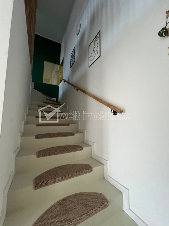 Apartament PETFRIENDLY, 3 camere, 2 terase, parcare Floresti 3 camere • 90 m2 • 2 bai • etaj 1/1 • decomandat pret chirie 750 €/luna + 10 + 7 Caracteristici Tip locuinta Apartament Tip imobil casa/vila Numar camere 3 Numar bucatarii 1 Numar bai 2 Numar terase 2 Parcare nu Supr. construita 125 m2 Suprafata utila 90 m2 Compartimentare Decomandat Confort 1 Etaj 1/1 Construit cu Caramida Disponibilitate imediat Descrierea Apartamentului Vă oferim spre închiriere un apartament modern cu 3 camere, situat într-o zonă de case, la etajul 1 al unei vile. Acesta reprezintă o alegere ideală pentru o familie aflată în căutarea unui spațiu confortabil. Apartamentul dispune de două nivele, fiind compartimentat astfel: living cu zonă de dining și bucătărie open-space, 2 dormitoare, 2 băi, 2 terase. Apartamentul este mobilat și utilat, cu un spațiu de zi luminos și bine organizat. Toate finisajele sunt superioare. Cele două terase cu priveliște panoramică sunt spațiul ideal pentru relaxare. Apartamentul este petfriendly. Un alt avantaj important îl reprezintă locul de parcare. Locația este excelentă, zona este foarte liniștită. În apropiere se află Parcul Poligonului și Baza Sportivă Florești. ID Proprietate - P54546 Utilitati, Finisaje Utilitati generale: Electricitate, Apa, Gaz, CanalizareSistem de incalzire Incalzire in pardoseala Finisaje: Izolatii termice (Exterior), Pereti (Vopsea lavabila, Faianta), Podele (Parchet, Gresie), Ferestre cu geam termopan (PVC), Usa intrare (Metal), Usi interior (Lemn) Dotari: Bucatarie (Mobilata, Utilata), Contorizare (Apometre), Electrocasnice (Masina de spalat rufe, Frigider, Aragaz, Hota) Vecinatati si puncte de interes in zona Amenajare strazi (Asfaltate) Numar vizualizari: 51