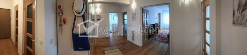 Apartament 4 camere, etaj intermediar, spatios, luminos, parcare, in Zorilor Cluj-Napoca, Zorilor 4 camere • 98 m2 • 2 bai • etaj 7/10 • semidecomandatfinisat • mobilat complet pret chirie 850 €/luna 730 €/luna + 7 + 4 Inchiriat Caracteristici Tip locuinta Apartament Tip imobil bloc de apartamente Numar camere 4 Numar bucatarii 1 Numar bai 2 Numar balcoane 3 Parcare da Supr. construita 117 m2 Suprafata utila 98 m2 Compartimentare Semidecomandat Confort 1 Etaj 7/10 Construit cu Caramida Disponibilitate 15 octombrie Descrierea Apartamentului Va oferim spre inchiriere un apartament cu 4 camere, situat pe strada Observatorului. Apartamentul este situat la etajul 7 al unui imobil dispus pe 10 niveluri, dotat cu 2 lifturi. La interior, apartamentul dispune de finisaje moderne, predandu-se complet utilat si mobilat modern. Apartamentul este decomandat, fiind dispus astfel: -1 dormitor matrimonial, -1 dormitor dotat cu pat extensibil (dormitorul albastru din poze), -1 living, -1 birou, -1 bucatarie, -2 bai, -3 balcoane din care 2 inchise. Camerele sunt luminoase, pozitionate astfel: dormitoarele la Est, livingul la Sud si bucataria la Vest. Dotari: bucatarie utilata, masina de spalat haine noua, electrocasnice noi, televizor smart, internet si televiziune instalate Canapeaua din living este extensibila. In pretul apartamentului este inclus si un loc de parcare. P17069 ID Proprietate - P17069 Utilitati, Finisaje Utilitati generale: Electricitate, Apa, Gaz, CanalizareSistem de incalzire Centrala termica, Calorifere Finisaje: Pereti (Vopsea lavabila, Var, Faianta), Podele (Parchet, Gresie), Ferestre cu geam termopan (PVC), Usa intrare (Metal) Dotari: Bucatarie (Mobilata, Utilata), Contorizare (Apometre, Contor gaz), Mobilat (Complet), Dotari imobil (Interfon, Lift), Electrocasnice (Masina de spalat rufe, Frigider, Aragaz) Vecinatati si puncte de interes in zona Sigma Center Amenajare strazi (Asfaltate), Iluminat stradal, Mijloace de transport in comun Numar vizualizari: 3093