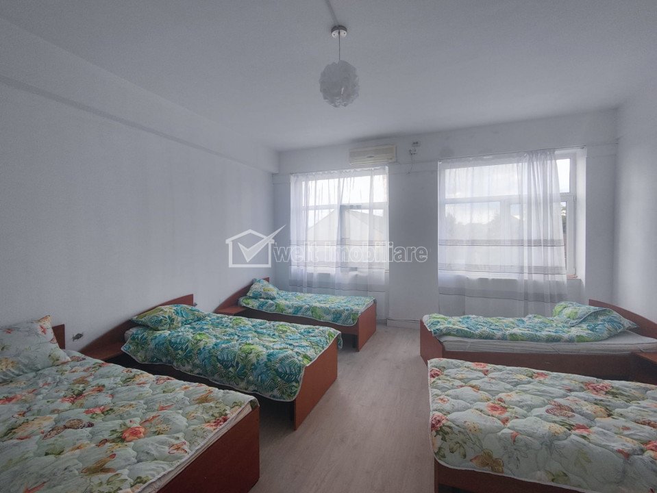 Spatiu de inchiriat, dedicat muncitorilor, in Iris! Cluj-Napoca, Iris 7 camere • 350 m2 • 6 bai • etaj 1/2 • decomandatfinisat • mobilat complet pret chirie 3.900 €/luna + 8 + 5 Inchiriat Caracteristici Tip locuinta Apartament Tip imobil bloc de apartamente Numar camere 7 Numar bucatarii 1 Numar bai 6 Parcare da Supr. construita 420 m2 Suprafata utila 350 m2 Compartimentare Decomandat Confort 1 Etaj 1/2 Construit cu Caramida Disponibilitate imediat Descrierea Apartamentului Va propunem spre închiriere un spațiu dedicat cazării muncitorilor, zona Iris. Dispune de o suprafata de 350mp utili, decomandati in 6 camere, bucatarie dotata si utilata, 7 toalete, 6 dusuri, chiuvete si toate utilitatile necesare. Spatiul este destinat pentru 26 de persoane. Incalzirea se face cu centrala si in spatiul bailor se mai adauga un boiler performant. Se afla la etajul 1 al unul imobil cu 2 etaje, in jurul cladirii se pot parca 7 masini. In apropriere se afla gara, Dedeman, magazine alimentare. Pentru detalii si alte informatii, contactati-ne! ID Proprietate - P38799 Utilitati, Finisaje Utilitati generale: Electricitate, Apa, Gaz, CanalizareSistem de incalzire Centrala termica, CalorifereClimatizare Aer conditionat Finisaje: Pereti (Vopsea lavabila, Faianta), Podele (Parchet, Gresie), Usa intrare (Metal), Usi interior (Lemn) Dotari: Bucatarie (Mobilata, Utilata), Contorizare (Apometre, Contor gaz), Mobilat (Complet), Dotari imobil (Interfon), Electrocasnice (Masina de spalat rufe, Frigider, Masina de spalat vase, Hota) Vecinatati si puncte de interes in zona Spitalul Clinic Municipal Cluj Napoca, Strand Clujana Amenajare strazi (Asfaltate), Iluminat stradal, Mijloace de transport in comun Numar vizualizari: 1219